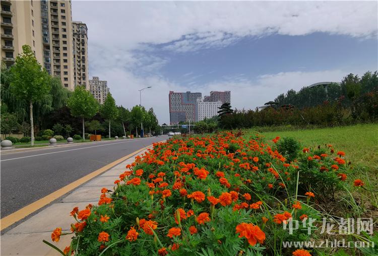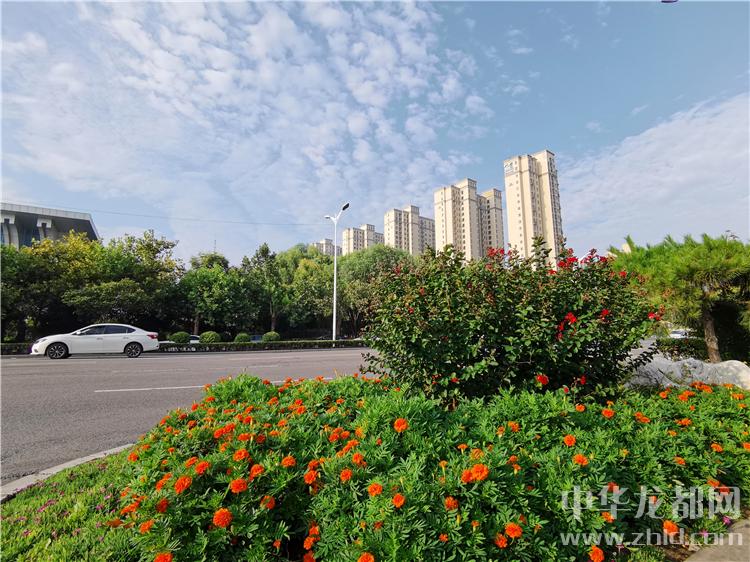 8月24日早上,周口市雨过天晴,城区蓝天白云,鲜花怒放,呈现画卷般的美景。