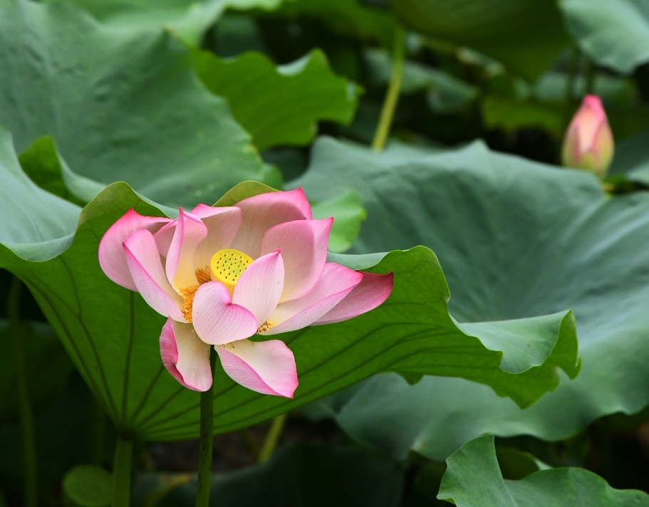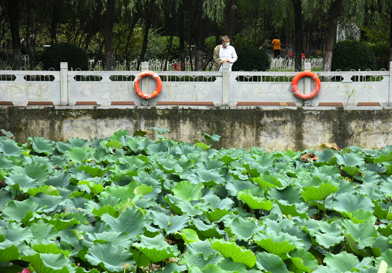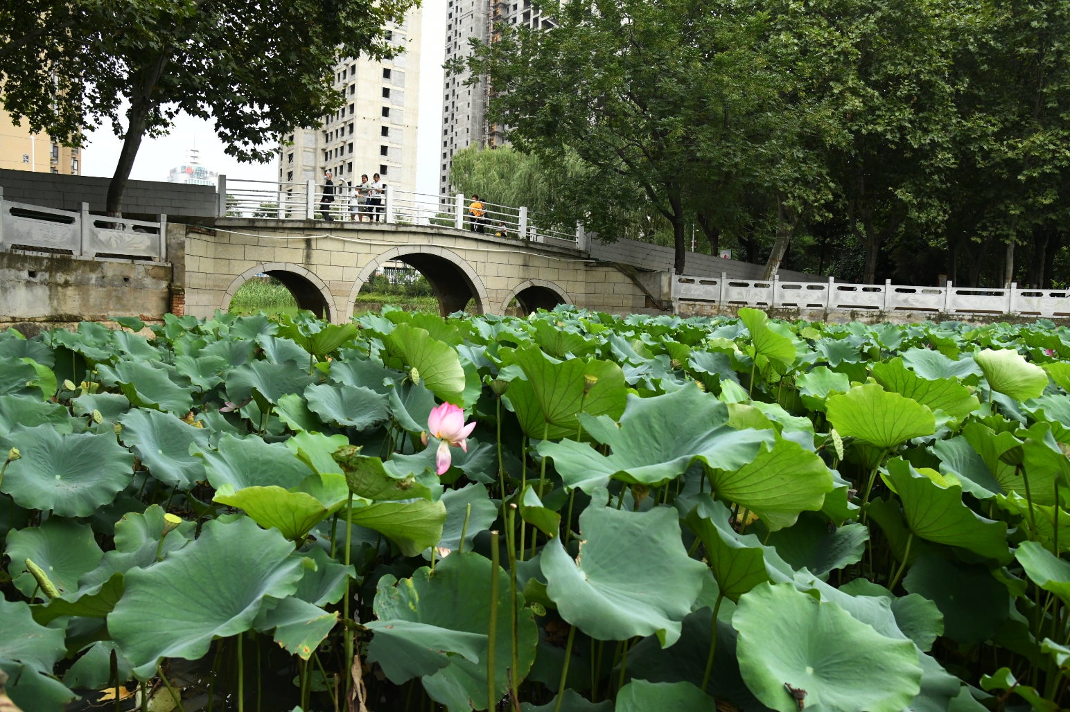 9月7日,人民公园的荷花池内的荷花依然娇艳美丽,比夏日里的荷花多了几分妖娆,呈现出“接天莲叶无穷碧,映日荷花别样红”的景象。不少市民在荷花池边欣赏初秋时节的荷花,享受公园内的这份幽静惬意。③8