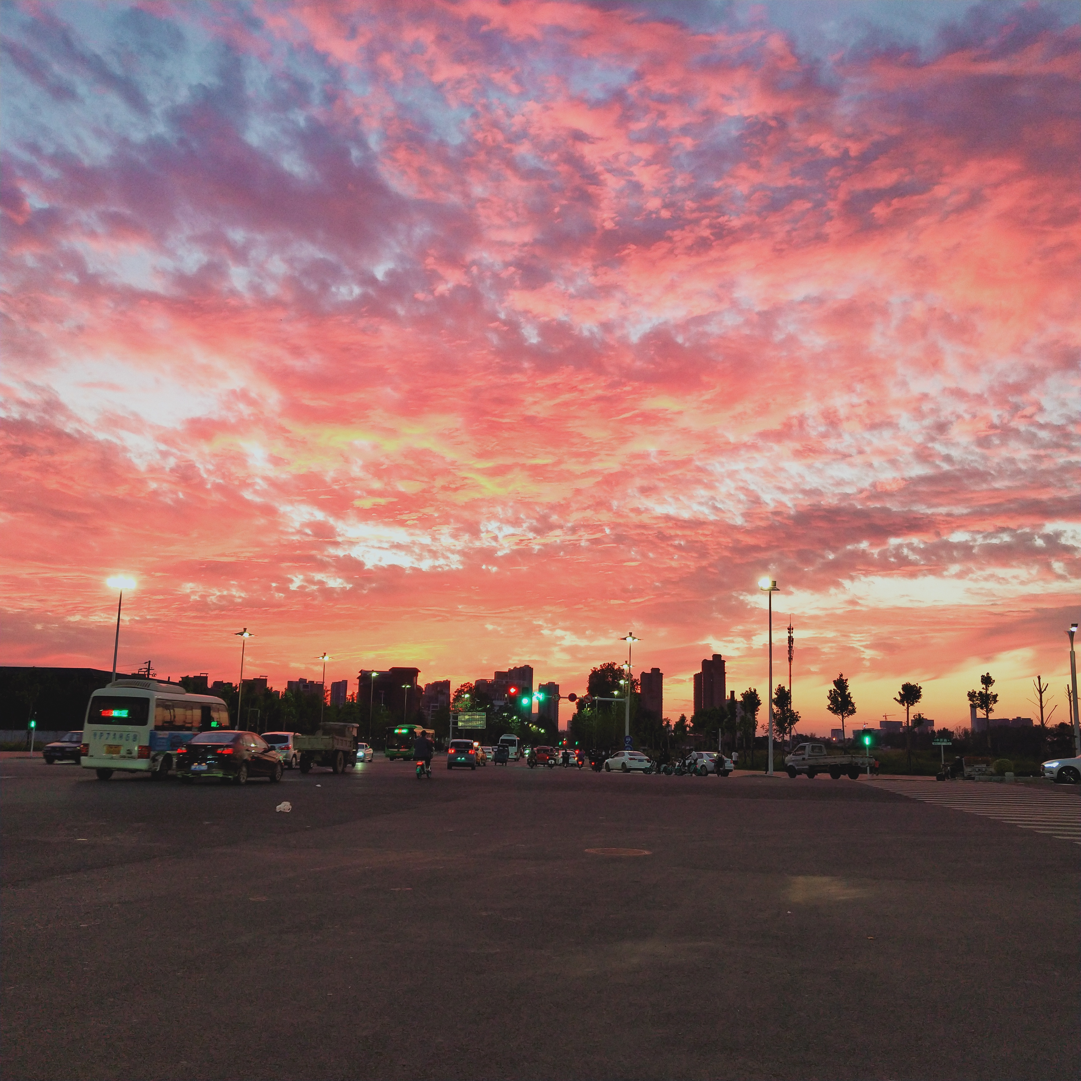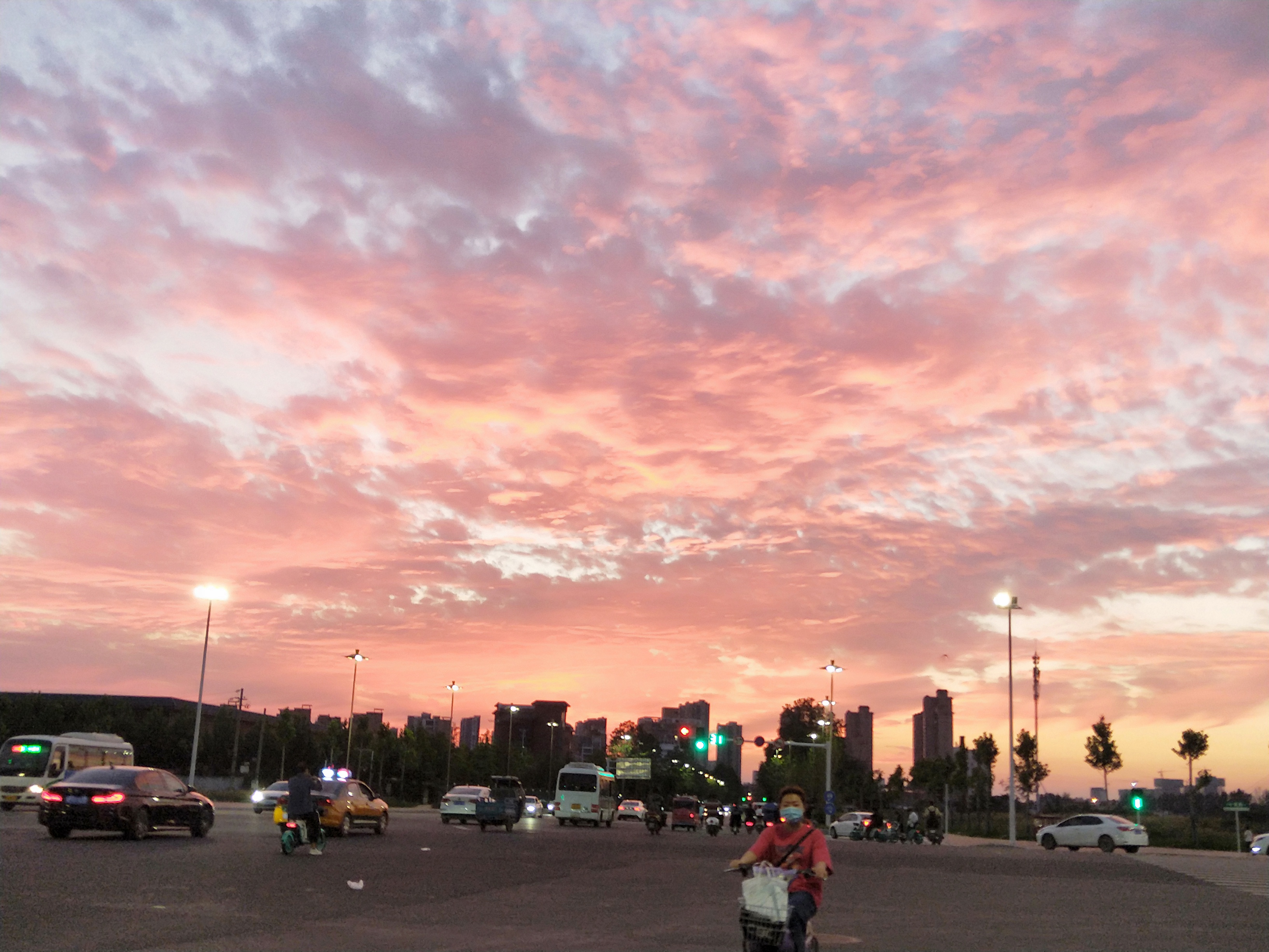 9月7日,我市绵雨几日后,迎来晴空。下午6点50分左右,记者行至中原路与交通路交叉口时看到,落霞满天,绵延数里,甚是壮观,行人车辆秩序井然,一派祥和景象!