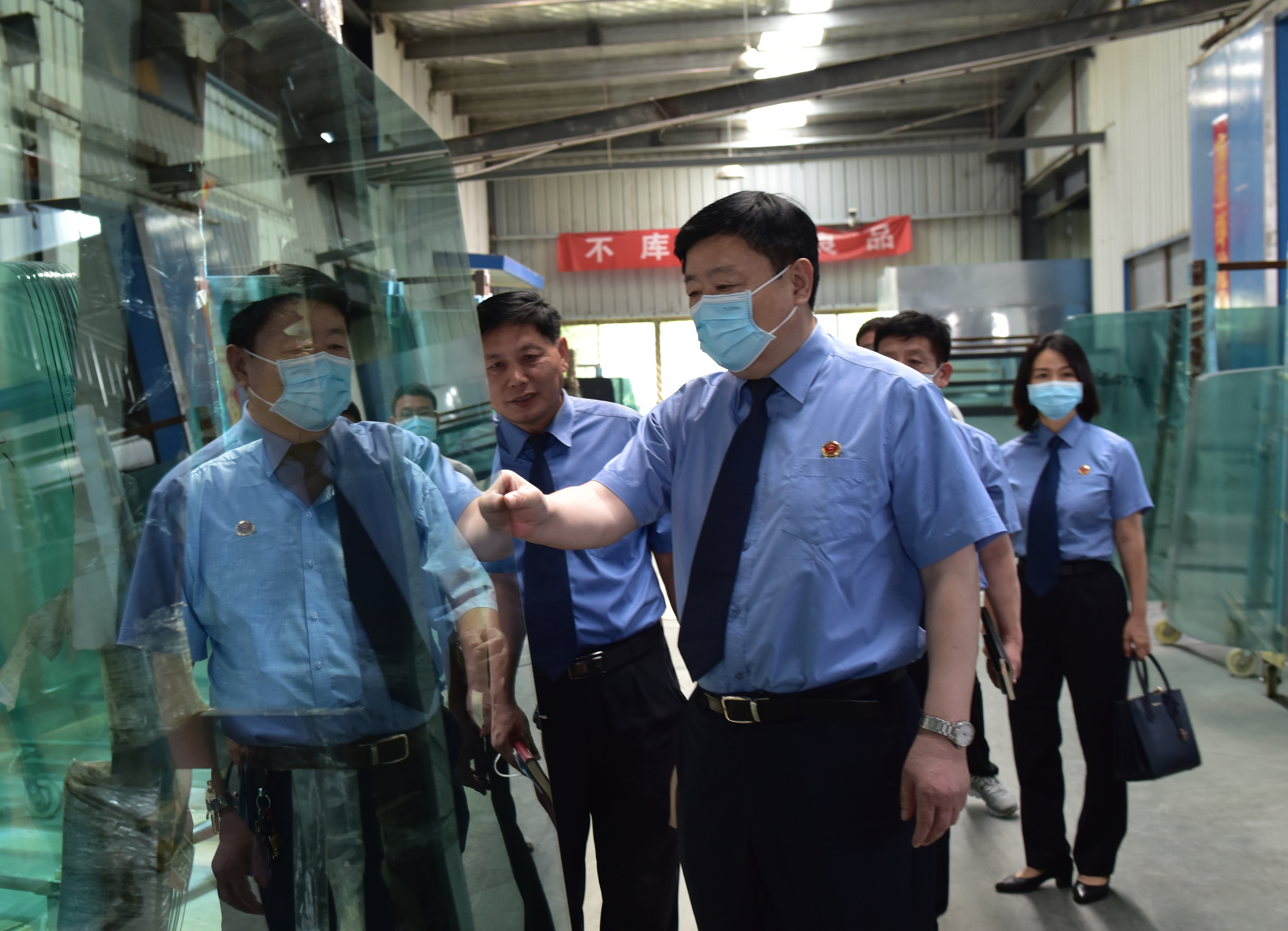在河南省深入开展“万人助万企”活动中,鹿邑县检察院以“干净、干练、干事”精神为民营企业合规性发展营造良好的营商环境。2021年9月14日,鹿邑县检察院党组书记、检察长鲁建军带领2名党组成员、1名检委会专职委员和综合业务部主任等一行7人深入到县产业园区德奥福玻璃有限公司走访调研,了解企业经营情况,为企业发展提供法律服务,助力企业合法合规健康发展。