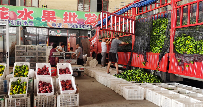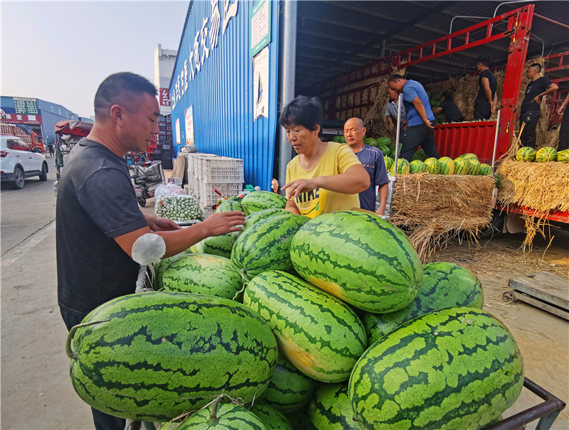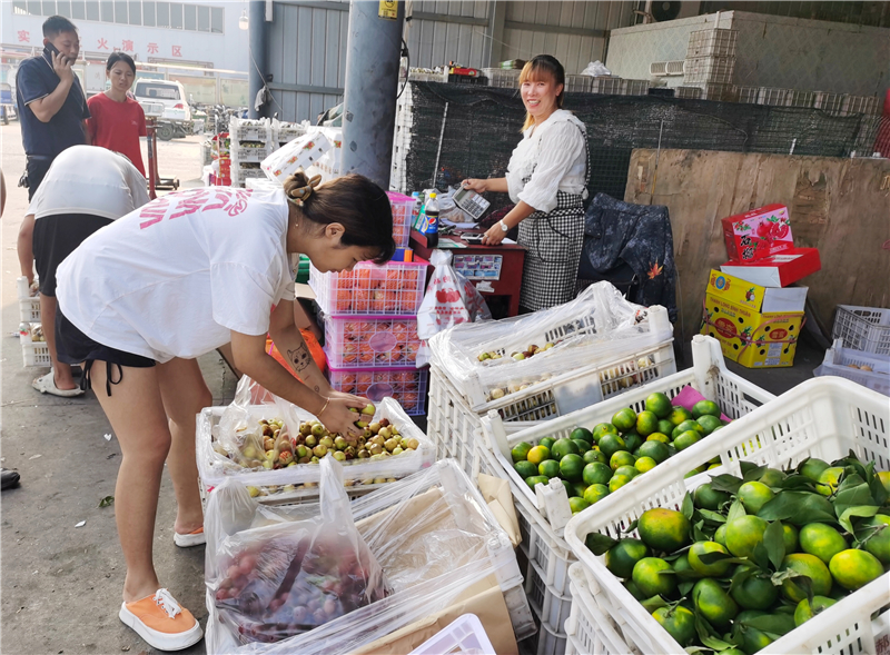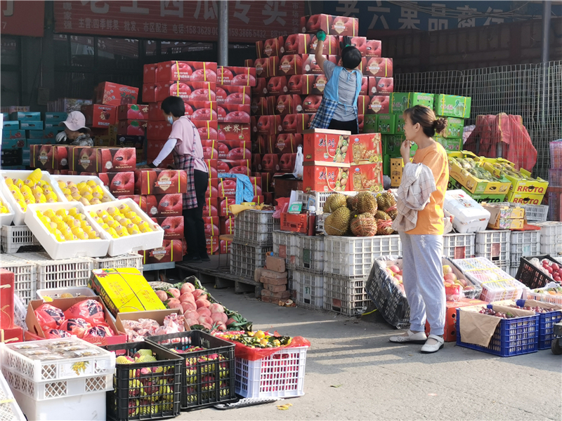 9月17日,黄淮水果批发市场内搬运水果的、买卖水果的人忙得不可开交,很是热闹。