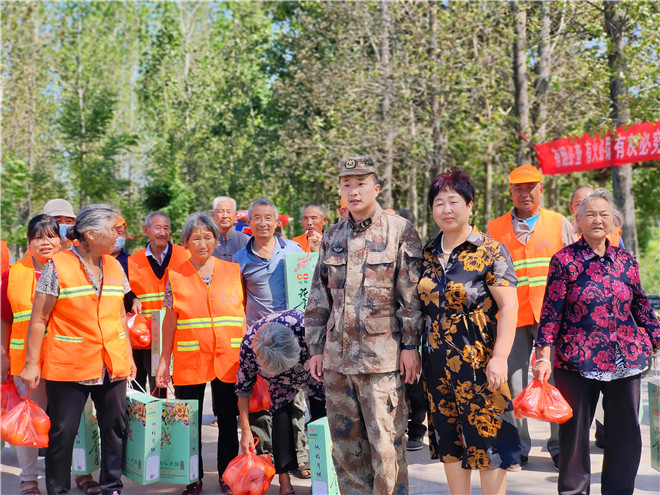“我是隔壁村马庄的,过节想着我们孤寡老人,俺从心里感觉幸福!”朱河湾(音)老人说,“谢谢云英、新新娘俩对我们这些老人的关心!”②9