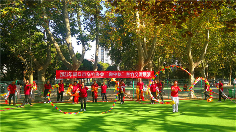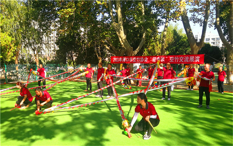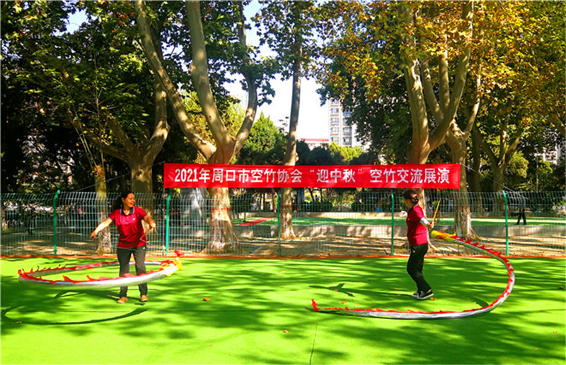 9月21日上午,周口人民公园空竹活动场地传来阵阵喝彩声,由市空竹协会举办的庆“中秋”空竹交流展演活动正在这里举行。