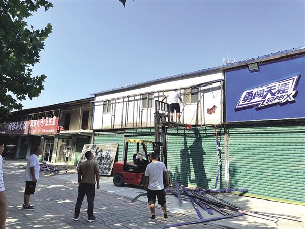 近日,开发区开展易燃可燃夹芯材料彩钢板综合整治和高层建筑消防安全专项整治活动,全面摸排全区彩钢板建筑安全状况,全面排查整治高层建筑消防安全突出问题,向火灾隐患“亮剑”。图为开发区消防救援大队拆除违规使用的易燃可燃彩钢板。 记者 郭坤 王晨 摄
