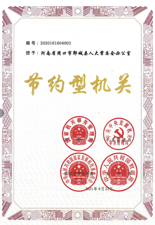 郸城县人大常委会办公室成功创建国家级节约型机关