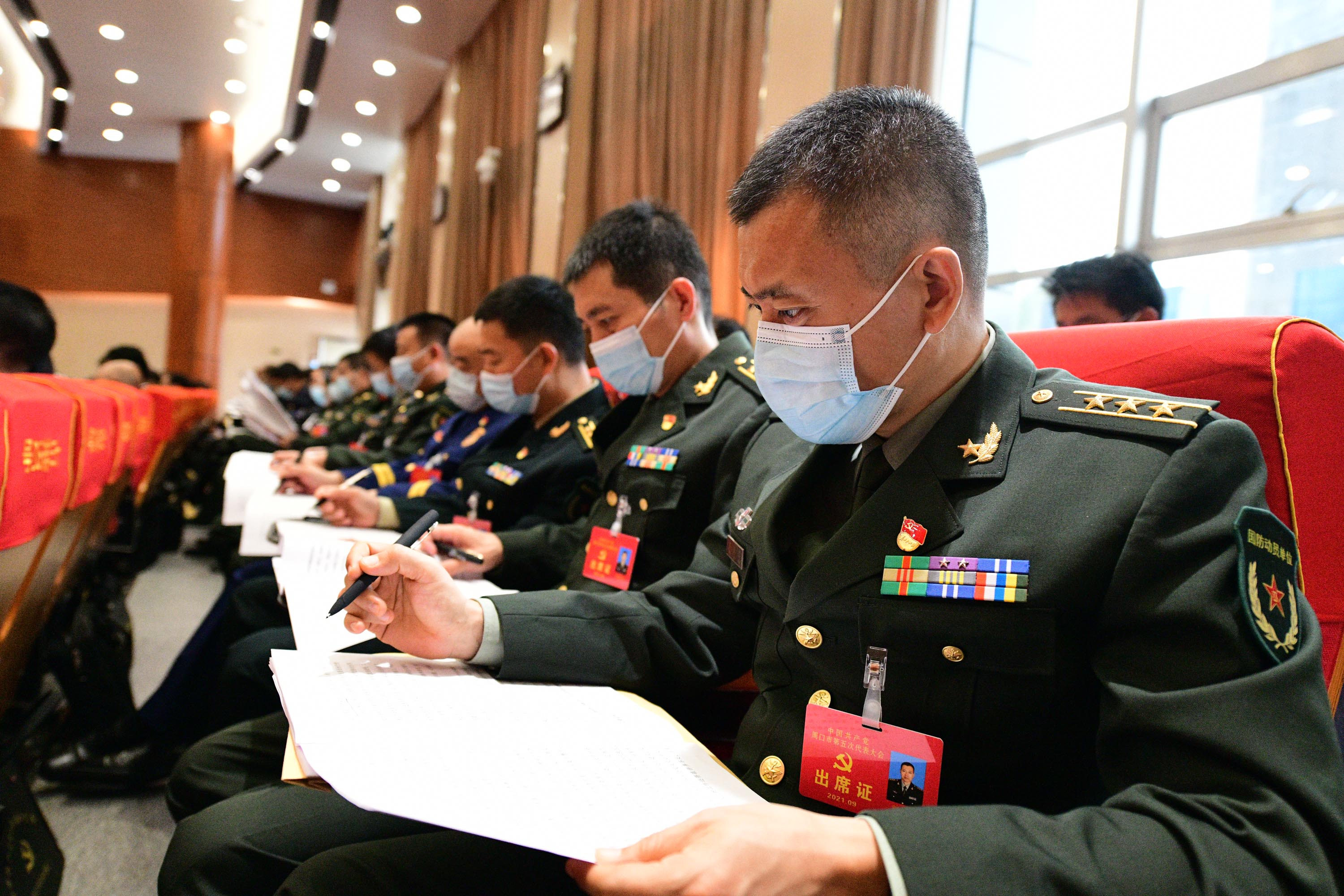 9月27日上午,中国共产党周口市第五次代表大会开幕,市委书记安伟作报告,参会的解放军代表认真听取工作报告。