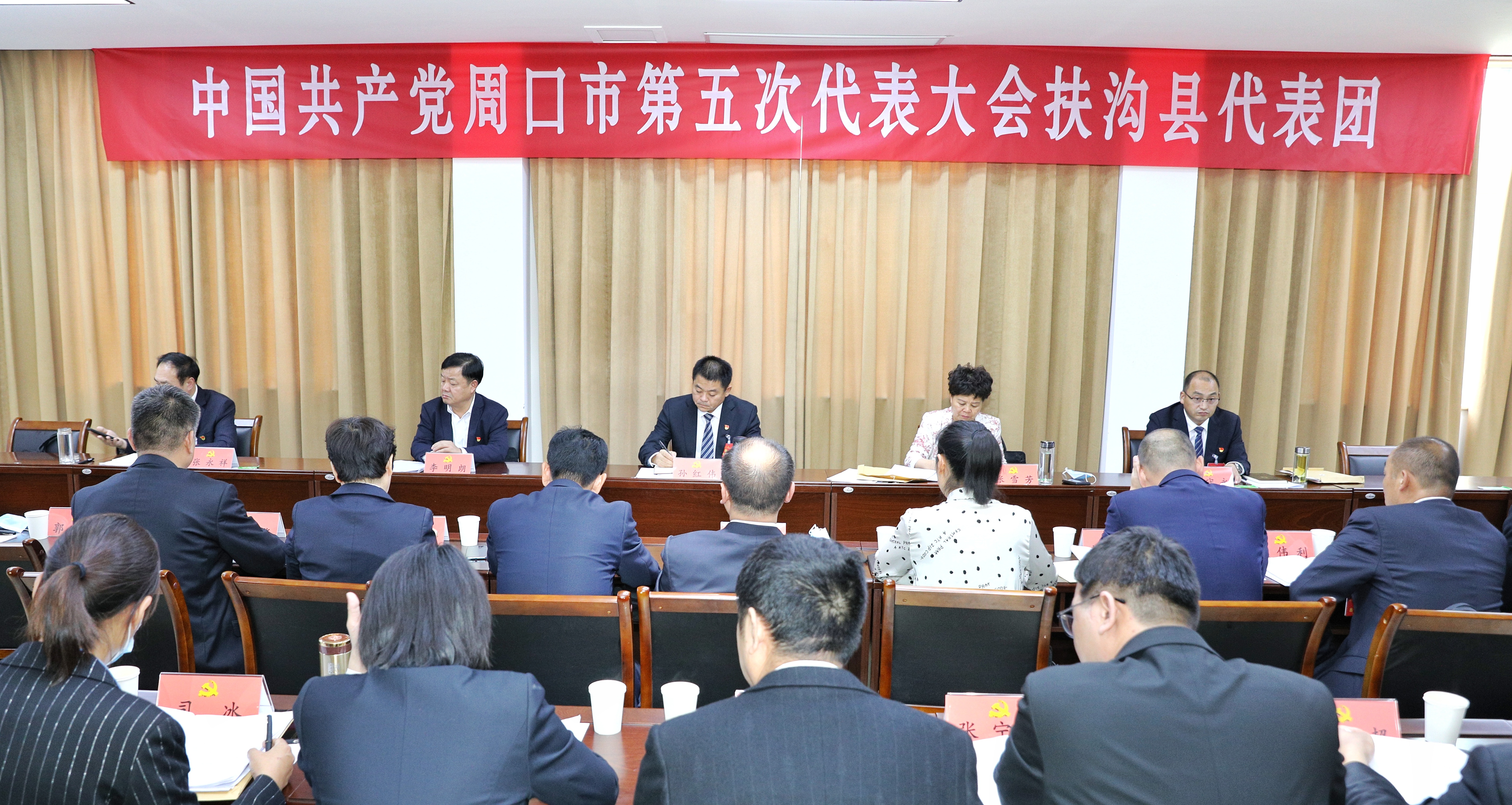 代表团团长、扶沟县委书记孙红伟主持会议。县领导张雪芳、李明朗、尚守永、徐彩云参加讨论审议报告。