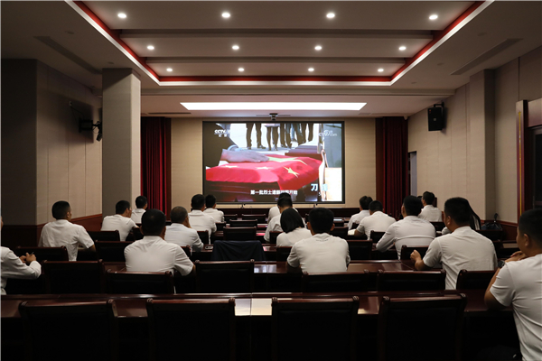 全体党员面向党旗集中宣誓,重温入党誓词后,集中观看学习党史纪录片《刀锋》。