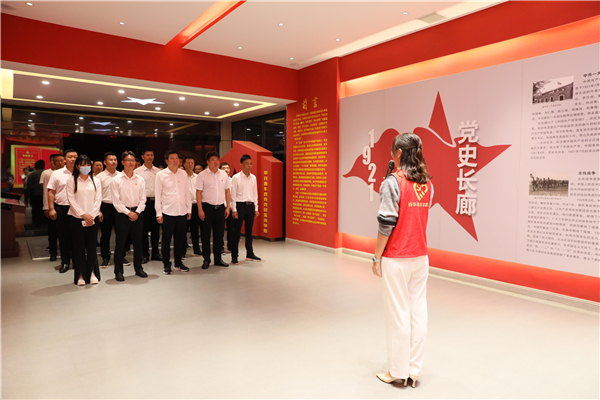 西华县委党员教育中心的红色长廊里,一幅幅图画,一段段文字,见证着中国共产党从诞生,到发展,到壮大,到带领中国人民走向胜利的光辉历程。通过志愿者讲解员的精彩讲解,全体党员详细了解了红船精神、井冈山精神、长征精神、延安精神、西柏坡精神等色彩鲜明的红色文化。