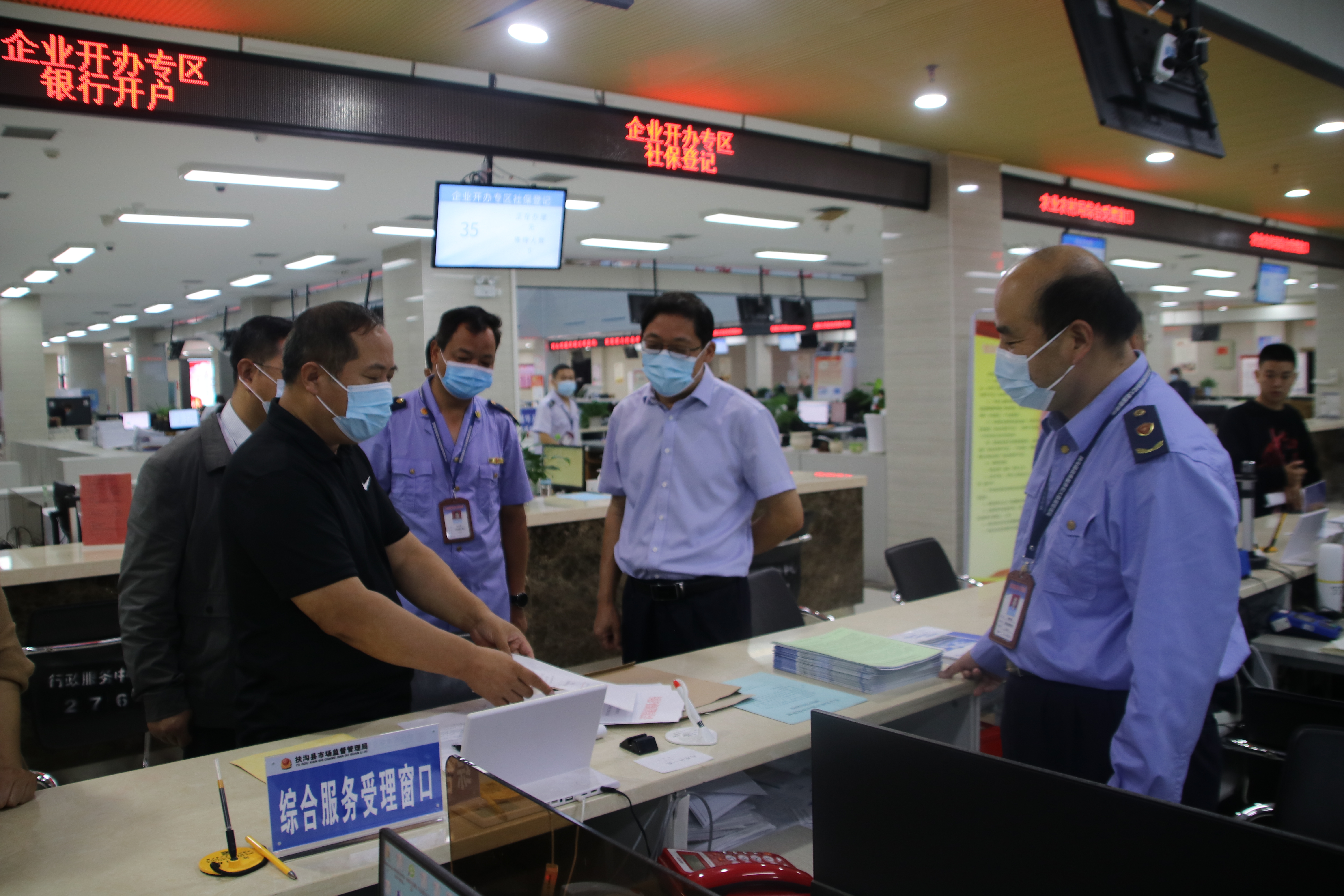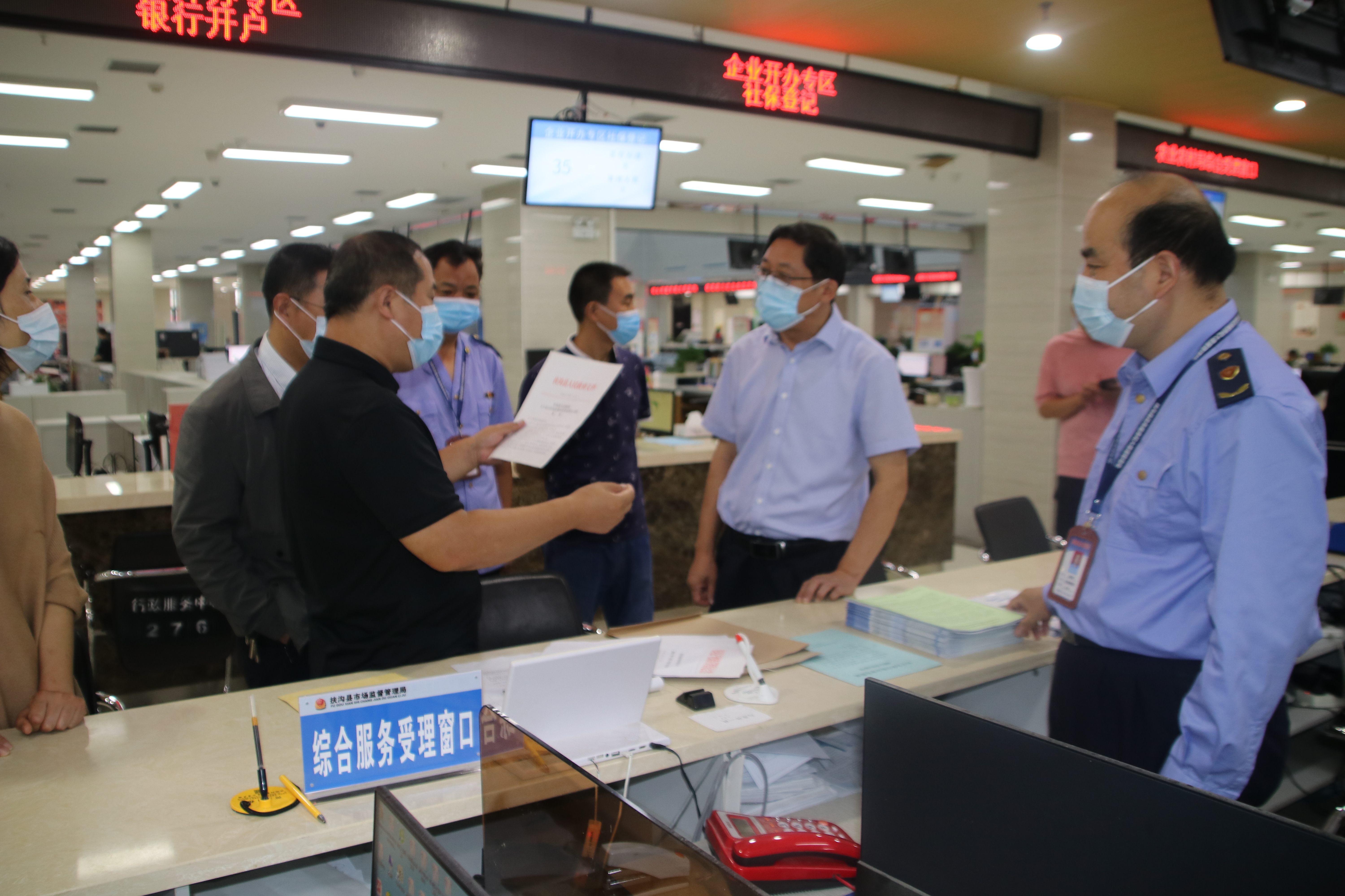 为推动学习党史教育活动走深走实,及时准确了解企业和群众对“企业开办”工作的感受和诉求,发现和掌握窗口服务中存在的突出问题,持续优化营商环境。9月28日,扶沟县市场监管局开展“一把手走流程”活动。局班子成员全员参与,深入基层办事大厅和执法一线体验办事流程和执法活动。
