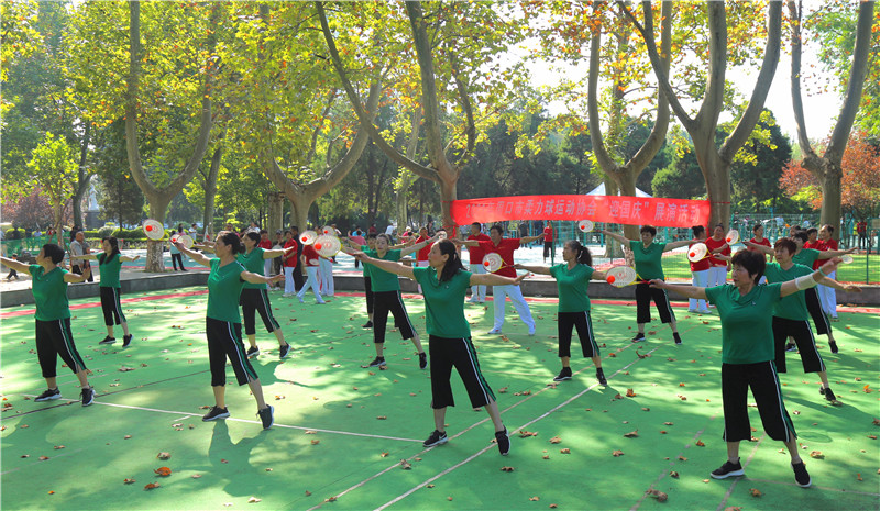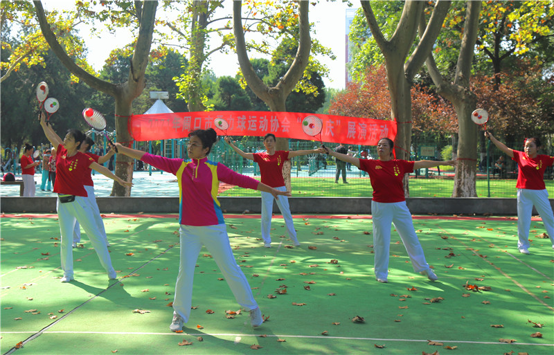 9月30日上午,市柔力球运动协会在周口人民公园内举行迎国庆柔力球展演活动,来自人民公园双拍双球柔力球队、示范区柔力球队、中心区柔力球队、人民公园柔力球队和竞技柔力球队的柔力球爱好者挥动球拍,以良好的精神风貌展示了柔力球规定套路和对抗训练动作等,为国庆节献礼。