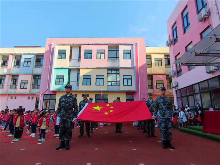 迎着朝阳,踏着雄赳赳的步伐,由家长代表、教师代表和幼儿代表组成的护旗方队整齐地站在操场上。当国歌奏响,国旗徐徐升起的时候,全体人员齐唱国歌,向国旗敬礼,为祖国祝福。