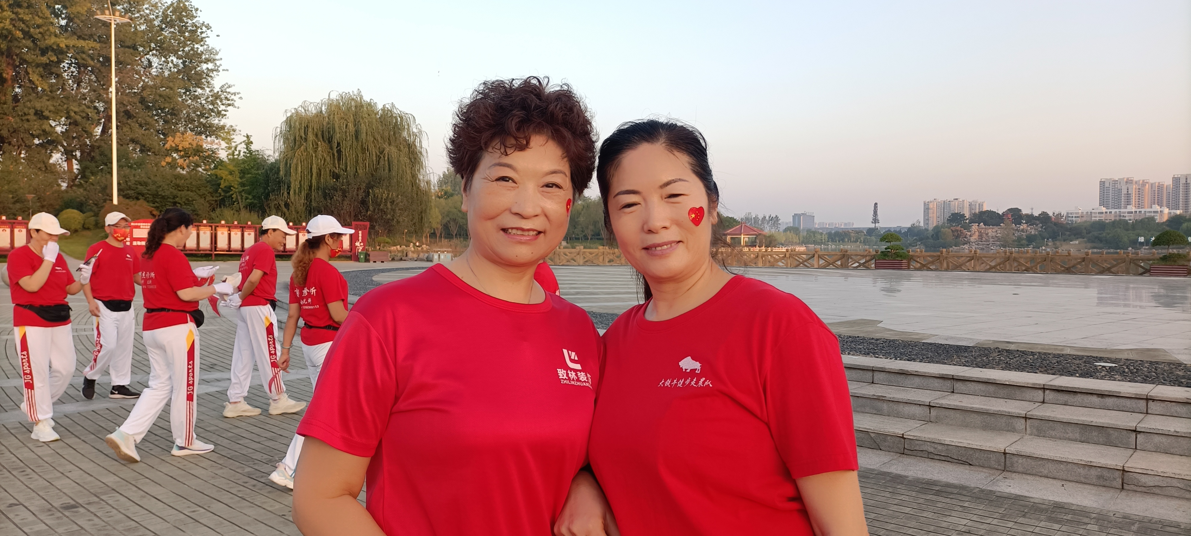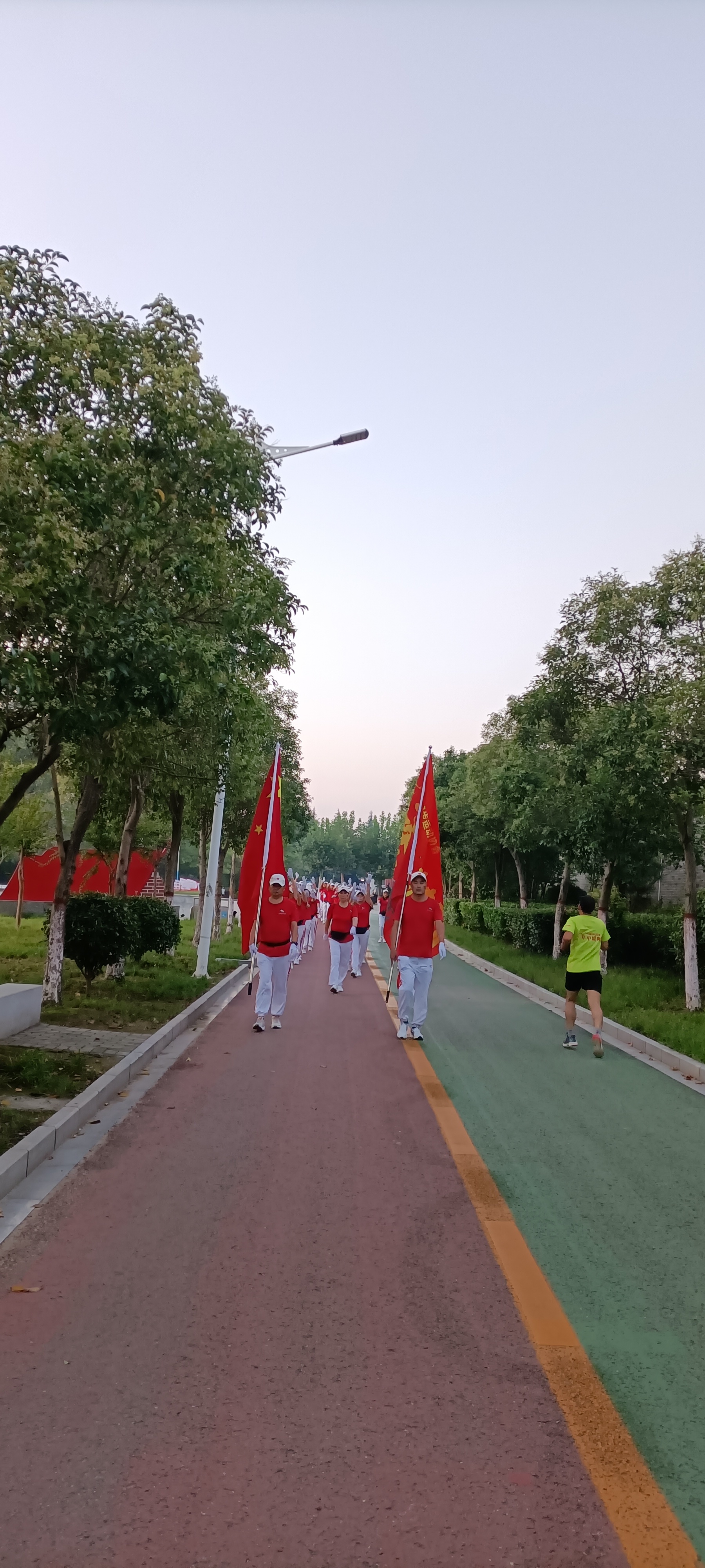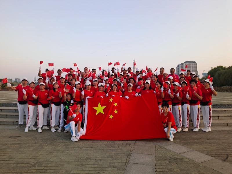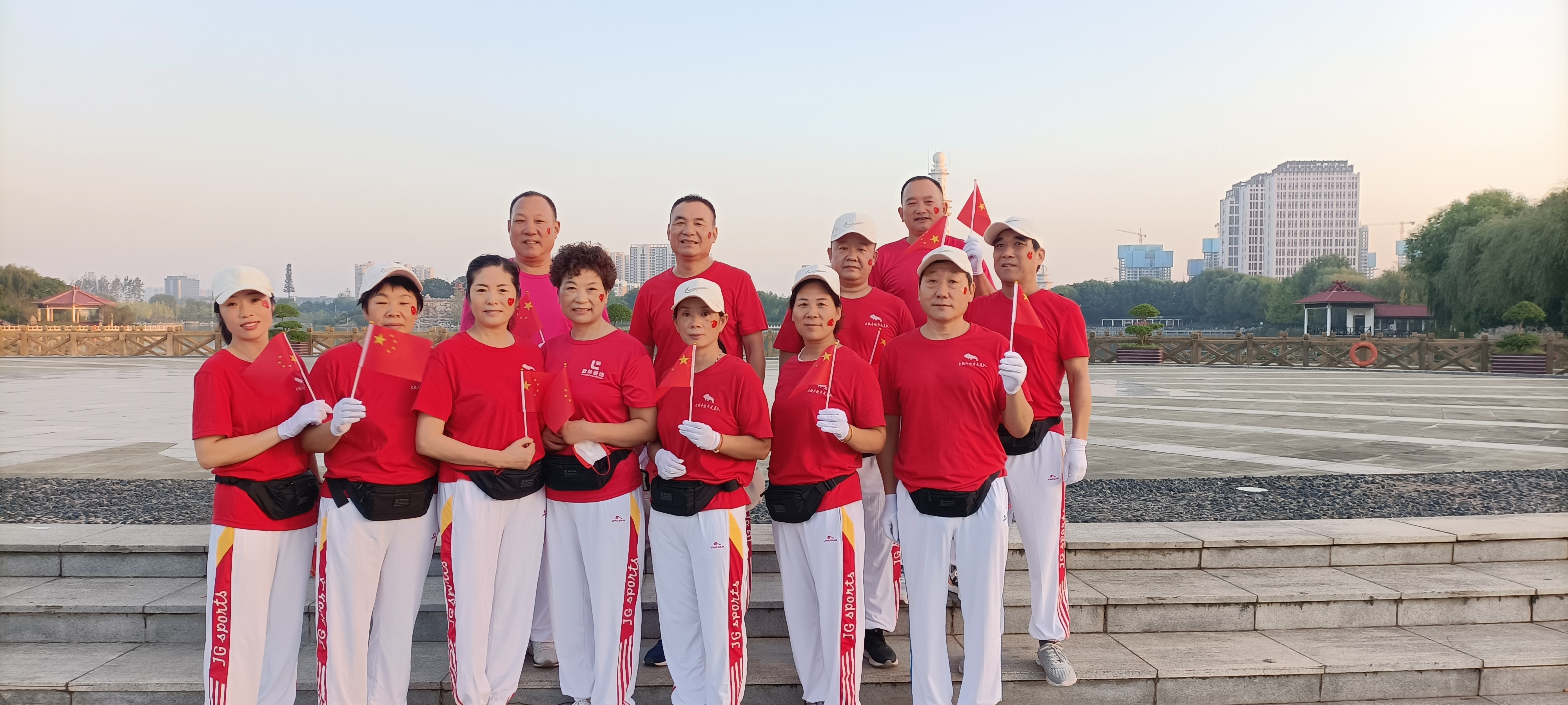 10月1日清晨,周口健步走大铁牛晨队的100余名队员手持国旗,迈着矫健的步伐,迎着初升的朝阳,行走在周口公园,以健康的身姿庆祝祖国生日。周口日报·周道客户端记者 高洪驰摄