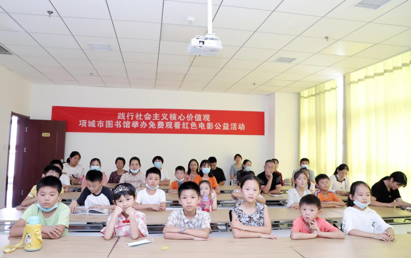 为弘扬革命精神,10月1日,项城市图书馆组织观看《建国大业》红色电影,来自40个读者家庭的6至12岁孩子参加。