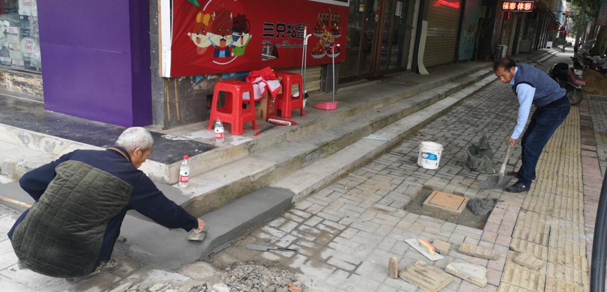 记者日前在太康县惠民路西段看到,几名工人在对路面坑洼的地方进行修补,路肩一侧堆放着沙子,旁边还有拌好的水泥,施工景象一片繁忙,过路的行人不时竖起大拇指点赞。据周边商户介绍,这里的人行道上有好几处洼坑,已经半年多了,给过往行人带来诸多不便,特别是有段盲人通道也有破损,存在有安全隐患。“这次,县医疗保障局的同志找来工匠,把这些洼坑给修补平整了,真是做了件实实在在的好事!”提及县医疗保障局的创建工作,市民王先生赞不绝口。