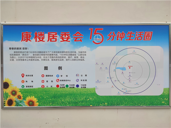 纪红玉介绍,淮河路办事处还根据康楼社区的实际情况,建设打造了15分钟生活圈,即康楼居民以居住地为圆心、步行15分钟路程为半径,在这个范围内可以有效享受到养老、医疗、教育、商业、交通、文体等基本公共服务。15分钟生活圈的打造,方便了康楼居民,提高了他们的生活品质,进一步增强了他们的幸福感和获得感。