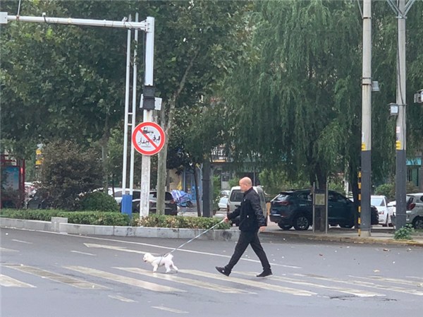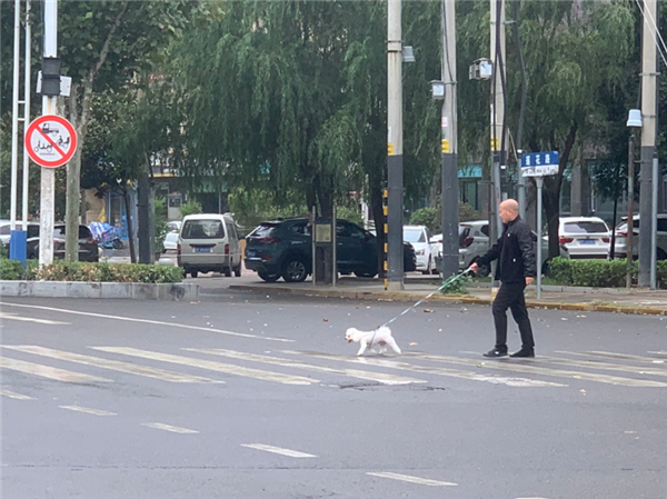 牵紧“文明绳”,做文明养犬人,创建人犬和谐的文明城市。10月10日14时许,在市中心城区中州大道与莲花路交叉口,一位男子外出遛狗时,给宠物狗拴上了牵引绳。②13