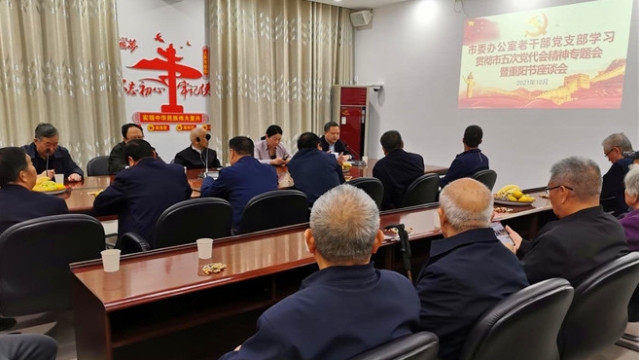 10月13日上午,周口市财政局在平原宾馆四楼会议室召开重阳节离退休干部职工座谈会,该局副处级以上干部、离退休干部职工共计56人参加座谈会。座谈会上,大家一起庆佳节、叙情谊、谈建议、议发展、话未来。