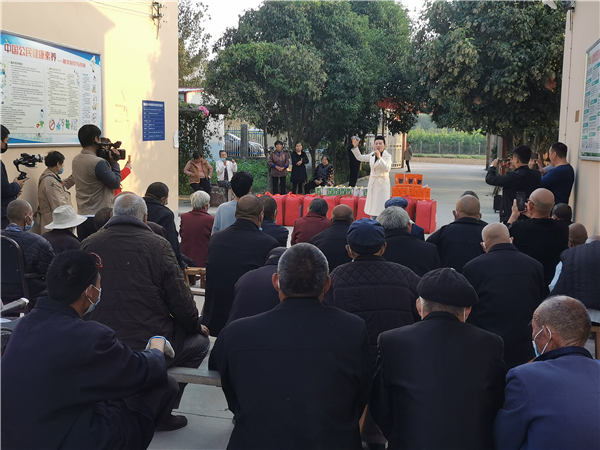 10月13日,在重阳佳节到来之际,商水县水韵章华项目联合市侨联和河南越调剧团到城关乡敬老院开展慰问演出活动,为老人们送去了留声机、棉被、牛奶、面包等近万元物资。市侨联主席冯连根,河南越调剧团团长、国家一级演员申小梅,水韵章华项目相关负责人朱占伟等出席活动。