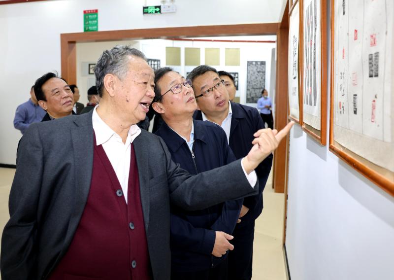 10月14日上午,柴建方书法篆刻碑廊落成揭牌仪式暨书法碑廊拓片、篆刻、摄影作品展在郸城县举行。县委书记李全林、县人大常委会主任李建军、县政协副主席王岩、县总工会主席王辉、市书法家协会副主席何岩等出席仪式或参观展览。