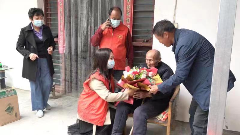 最后,志愿者们又驱车来到了逊母口镇逊北村张占花老人家中。张占花老人,今年已106周岁,老人平日里由子女照顾,身体基本健康,思维较清晰。提及现在生活,张占花老人表示,“现在生活很美,我很知足,不断说着感党恩、念党情,感谢志愿们的到来!”