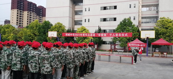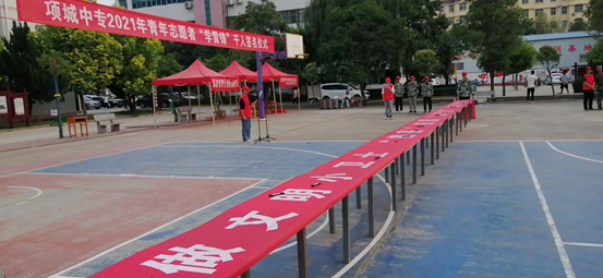 10月13日下午,项城中专近千名学生齐聚校园一角,嘹亮的军歌响彻整个校园,大家用歌声传达了对雷锋的热爱,在长达20米的“争做文明小卫士 擦亮校园大环境 共建全国文明城”签名条幅上,签下了自己的名字,表述了自己的决心,将学校创新思想道德建设载体,开展已达半年之久的创城志愿服务工作再次推上了新的浪潮。