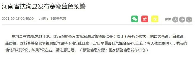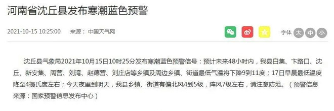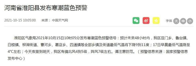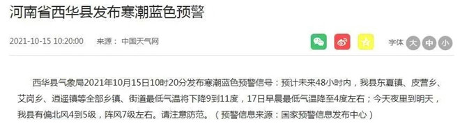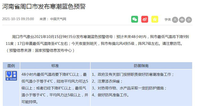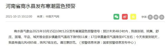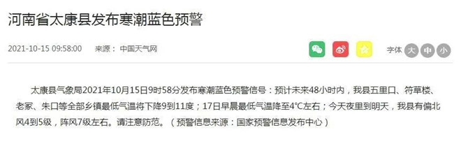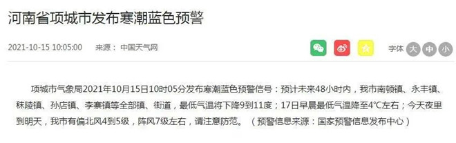 刚刚,周口发布多个寒潮预警!