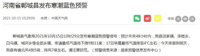 寒潮蓝色预警!