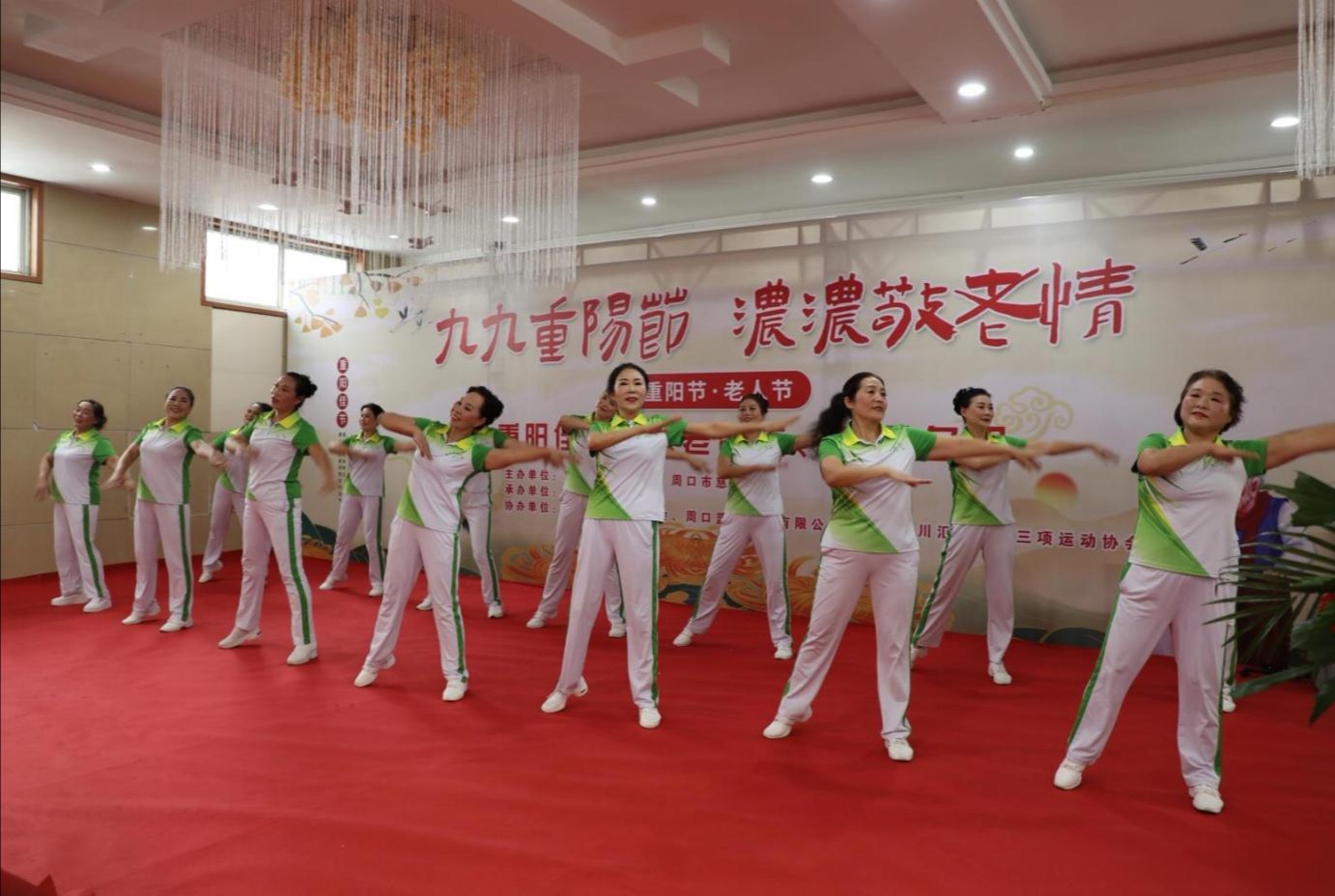 活动现场,热闹非凡。主办方为每位老人奉上喜庆的红围脖,当老人们披上红围脖,现场爱意浓浓、暖意融融。由周口市游泳协会会员们自编自演的歌舞《我和我的祖国》、《没有共产党就没有新中国》让现场气氛热烈,周口市游泳协会冰之花艺术团表演的模特走秀、时装展示,展现了新时代老年人的摩登风采,电子管、吉他、萨克斯演奏、戏曲联唱等一个又一个丰富多彩的文艺节目献给老人们,在场老人们看得津津有味,脸上荡漾着幸福的笑容。