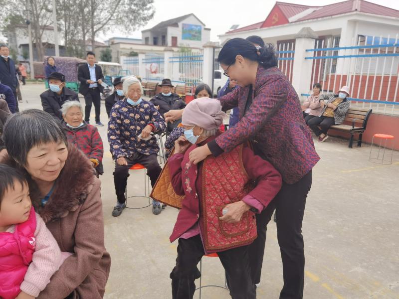 市妇联有关领导为该村百余名80岁以上老人送上棉衣、水杯等物品,并与老人们亲切地攀谈,询问老人们的生活、身体状况,嘱咐他们要注意身体,开心生活。