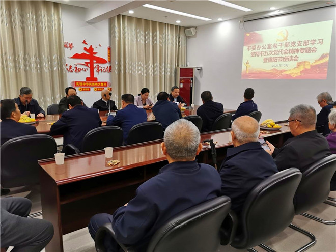 10月14日,市委办公室召开“九九重阳节”老干部座谈会,听建议,叙情谊,共庆重阳佳节。