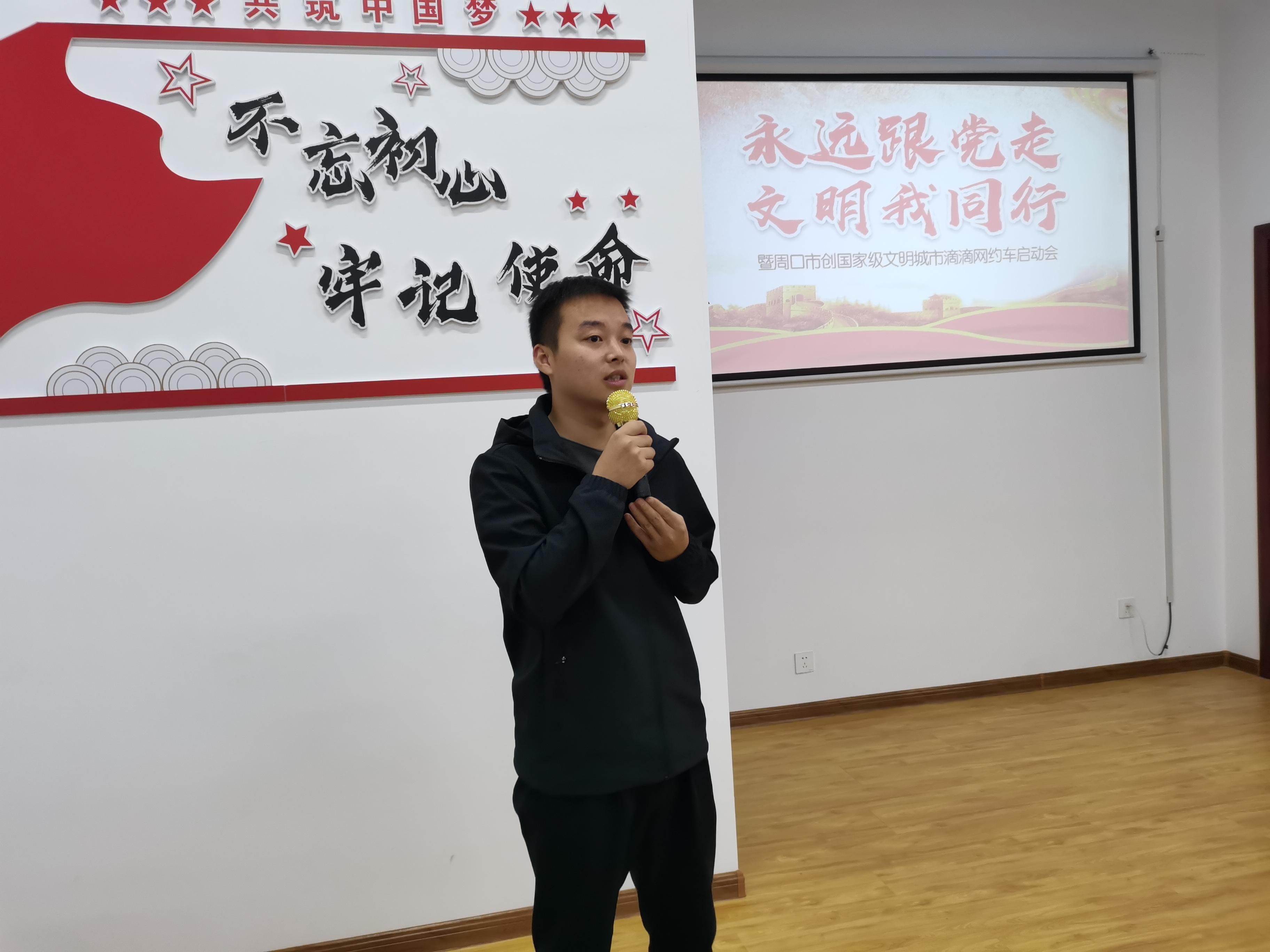 随后,平台区域经理张高飞对参会司机开展创建文明城市专项培训,从车辆卫生、文明服务、文明驾驶三个方面进行宣讲,引导司机全面提升周口网约车文明服务,进而展现周口网约车热情、好客、文明、诚信、友善的良好形象。