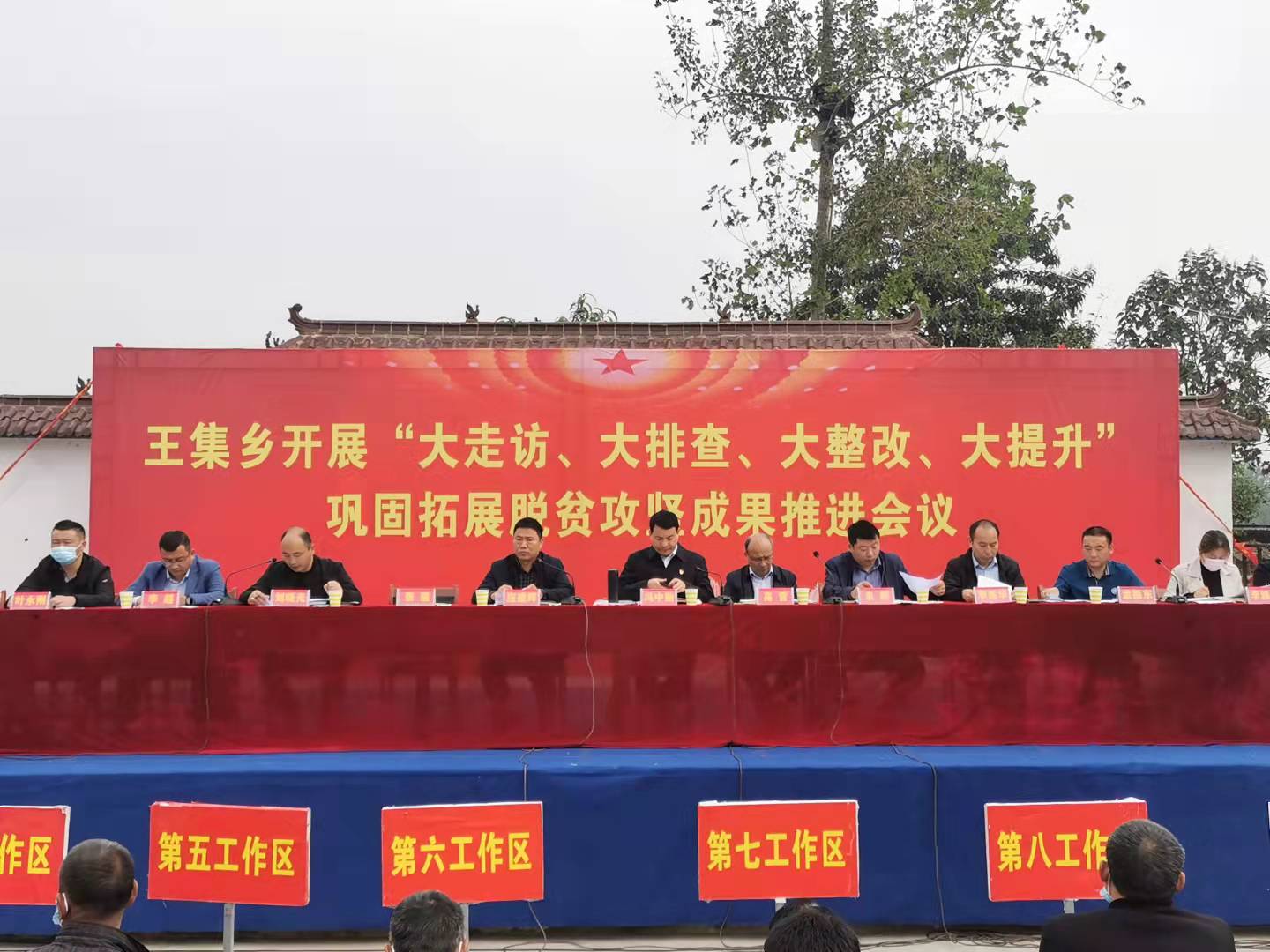 当晚7点,包乡领导县委常委、常务副县长邓昌锋紧急召开王集乡班子扩大会,传达领学全县专题会议精神,研讨细化下一步工作举措,并抽调能干事、会干事、干成事的乡村干部成立工作专班,制定《王集乡“大走访、大排查、大整改、大提升”巩固脱贫攻坚成果工作实施方案》。召开千人动员大会,在全乡营造政府主导、社会参与的良好氛围。全体乡干部每天早上一集合,班子成员每天晚上一调度,全面掌握各项工作落实情况,指导业务开展,研判解决存在问题。 同时,通过业务知识培训等形式,为干部充电赋能,增强本领,坚持为所帮扶村、户、人每月至少办一件实事,凝心聚力将每一件事做实做精。