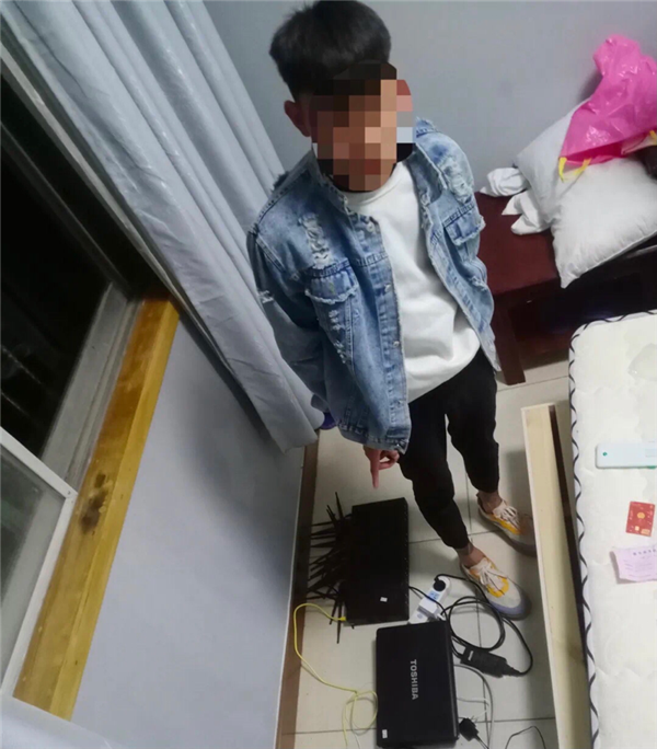 经过3天3夜的蹲守,办案民警摸清了犯罪嫌疑人的活动轨迹,10月13日晚上,吴台派出所所长朱浩宇带领民警贾坤阳等人果断出击,成功捣毁该涉诈窝点,将嫌疑人覃某宗和陈某钦抓获,查获“GOIP”设备1台、电脑2台、手机2部、路由器1台、摄像头1个。