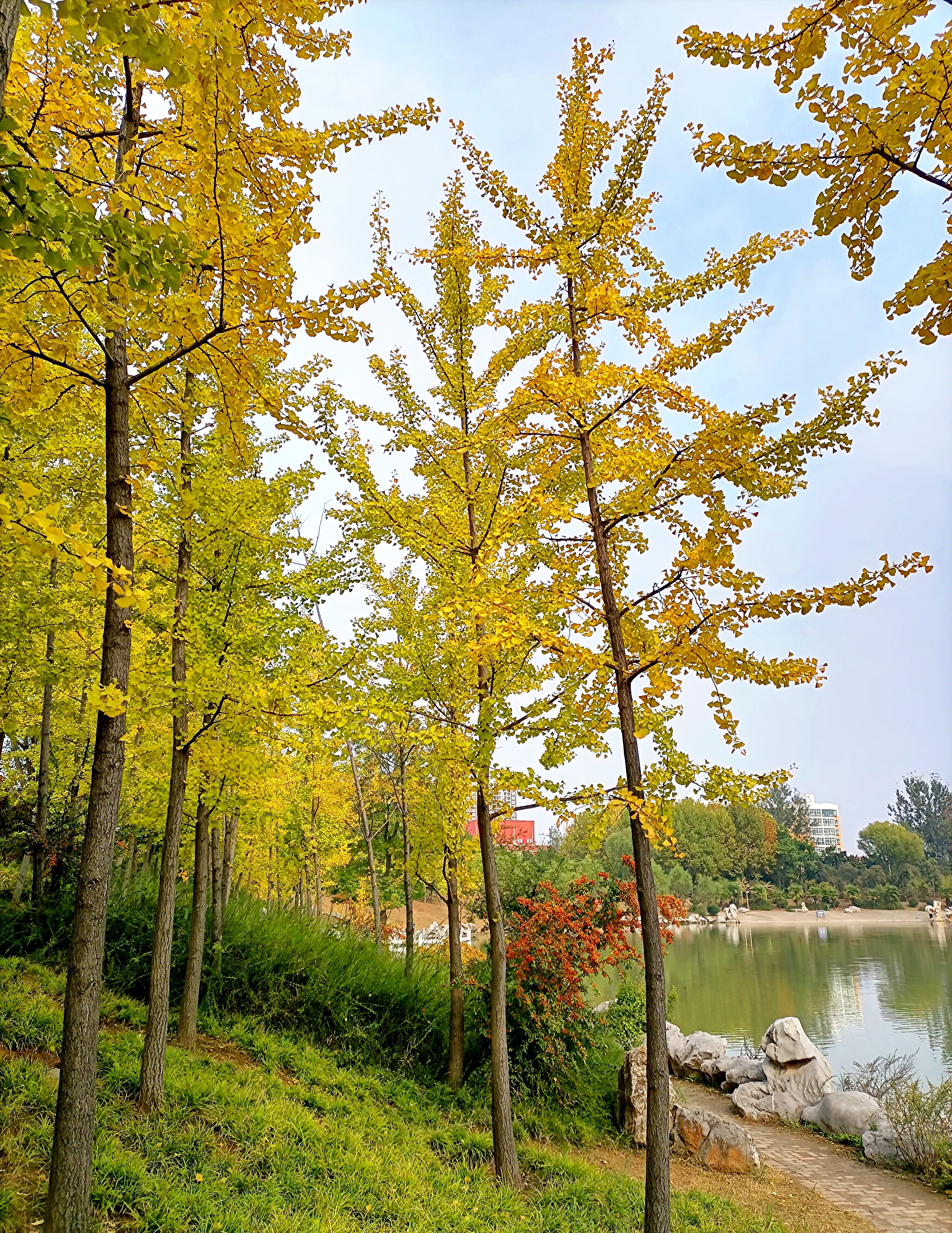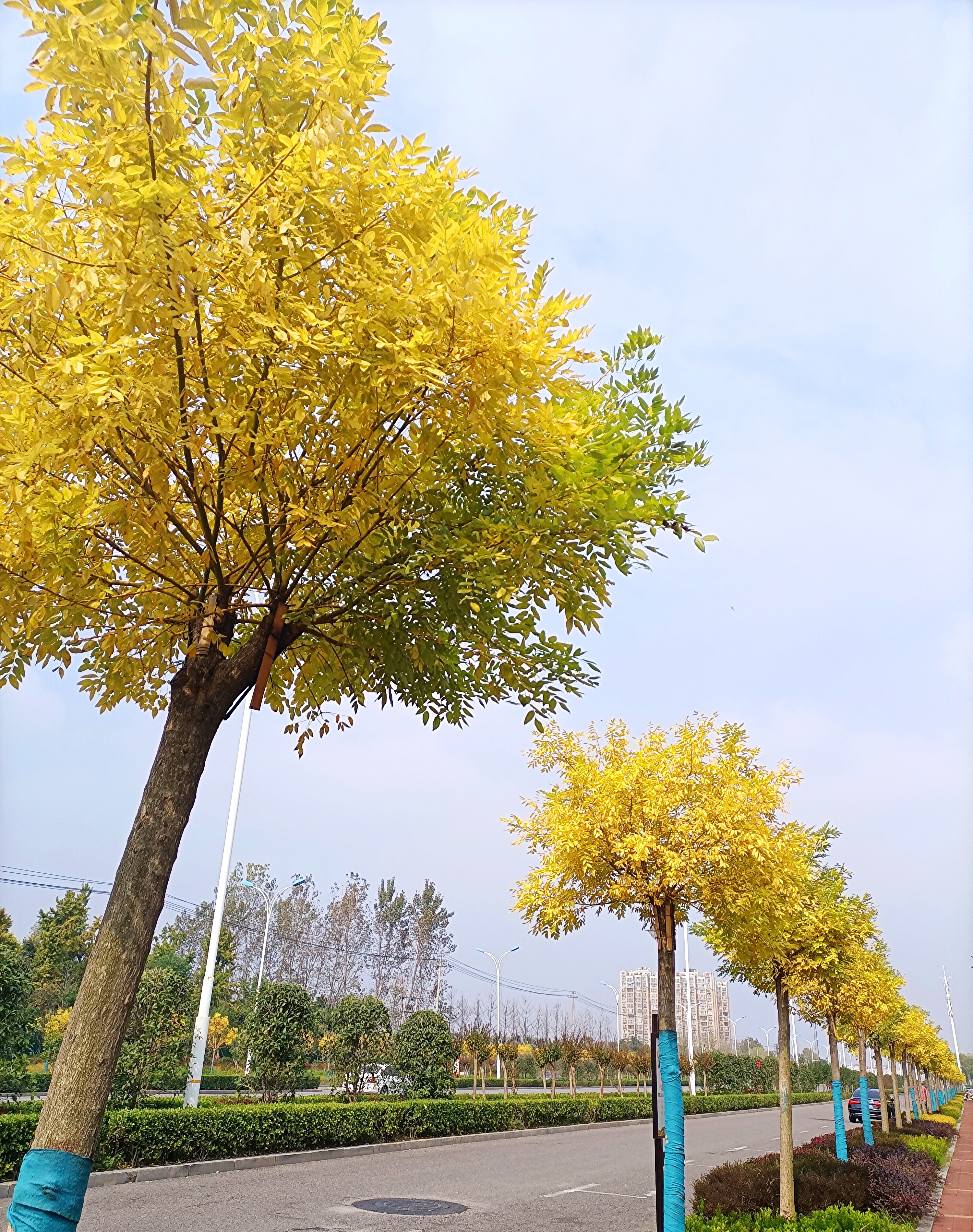 天气渐凉,绿叶渐黄。近日,我市中心城区各种树木渐渐披上了金黄色的“秋日盛装”,比如道路两旁的金丝槐树、周口公园的银杏树等。渐渐变黄的叶子呈现出一种别样的美感。