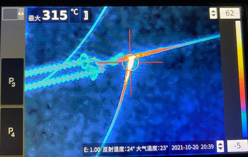 “莲邝线#19杆塔A相引流板连接螺栓发热315℃,这属紧急缺陷,需要立即处理!”10月20日晚,国网周口供电公司输电运检中心在对110千伏莲邝线六级电网风险保电夜巡过程中,发现莲邝线#19杆塔A相引流板存在打火现象。