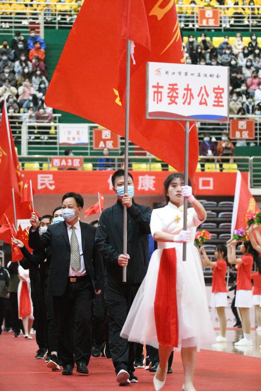 10月23日上午9时,周口市第四届运动会在市体育中心开幕,来自全市各县市区及市直等单位代表团参加开幕式。本届运动会设有青少年组、社会组、学生组三个组别项目的比赛,共有109支代表团参加,6000多人参赛。周口日报·周道客户端记者 梁照曾 摄 ③5