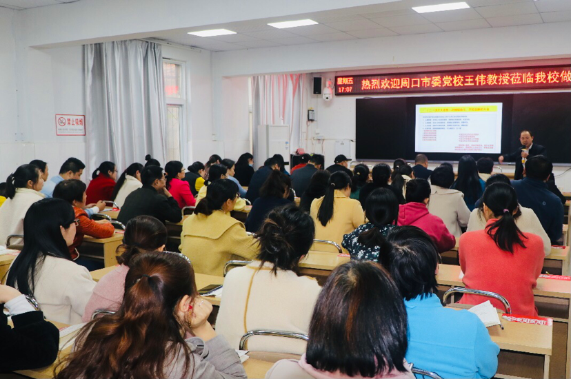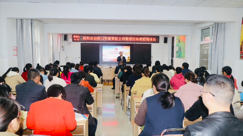 宣讲会上,市委党校宣讲团讲师王伟以“深入学习贯彻市五次党代会精神、开启全面建设社会主义现代化周口新征程”为主题,从充分认识市五次党代会的重大意义、准确把握市五次党代会的精神要义、全面落实市五次党代会的目标任务三方面,详尽解读了市五次党代会主旨报告的精神实质和丰富内涵。整场报告脉络清晰、论述深刻、内容丰富,既有深入浅出的理论阐述,又有结合我市发展的实例分析,更有教育实践层面的对策思考,为该校教职工深入、完整、系统地领会市五次党代会精神,有力推进贯彻落实党代会精神提供了一把“金钥匙”。