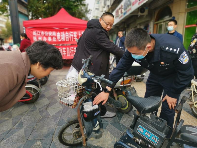 在中心城区交通大道与五一路交叉口的陈州办事处电动自行车上牌处,不少车辆已经上过牌照停放在规定地点。“我是前天上的牌照,家里需要,我就买了辆新电动自行车,各项材料齐全,拿到上牌点很快就完成了上牌。”家住附近的市民李女士说。