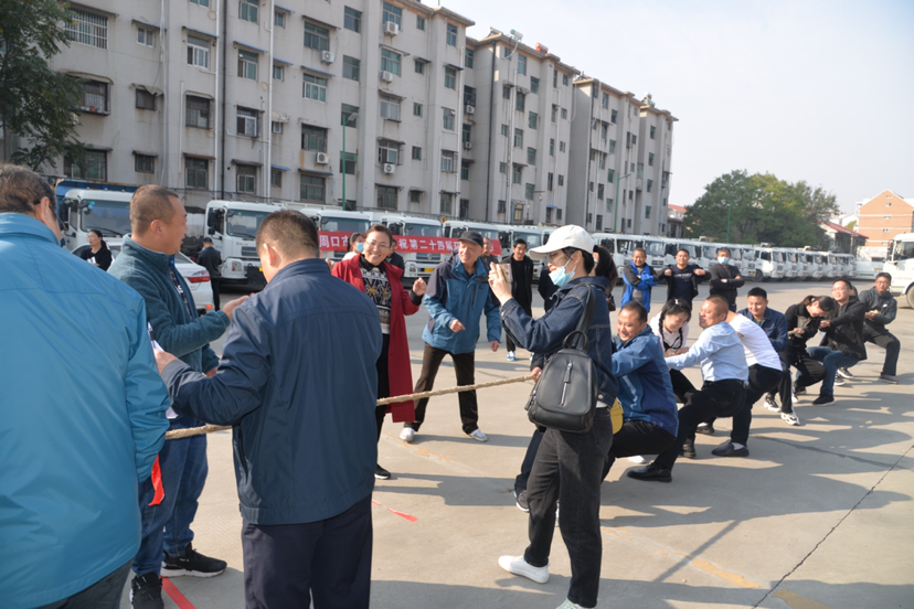在随后进行的环卫工人运动会上,共进行4人百米接力赛、跳绳和拔河3个项目的比赛。跳绳比赛,队员们相互支持,齐心起跳,配合默契。4人百米接力赛,大家冲刺如闪电,比速度、比技巧,乐趣无穷。拔河比赛,你拉我拽,使出浑身解数,阵阵欢声笑语,加油呐喊声一片,将气氛推向高潮。