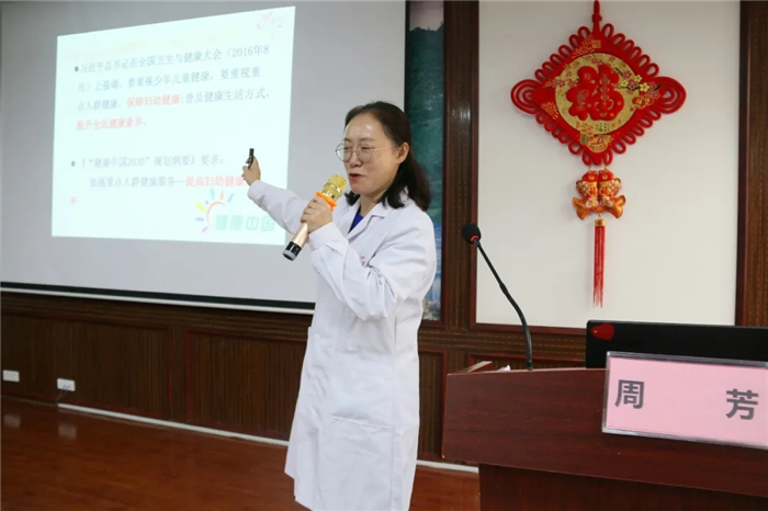 该院院长贺志勇,医院孕妇课堂名誉校长、鹤壁市妇幼保健院孕妇学校校长、副主任护师周芳,医院妇产科主任周金梅,护士长孙继霞及港区各社区(村)20余位计生专干和部分职工参会。