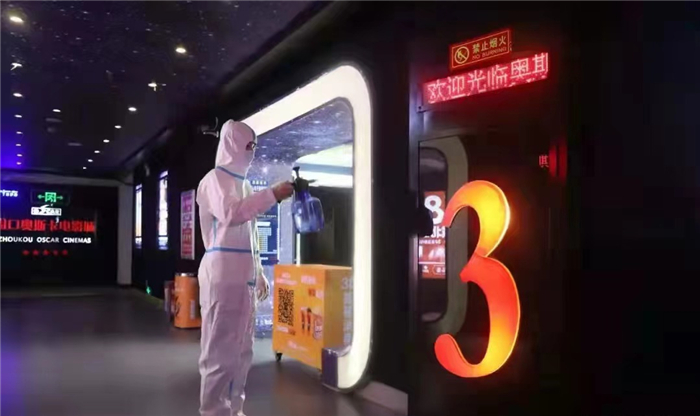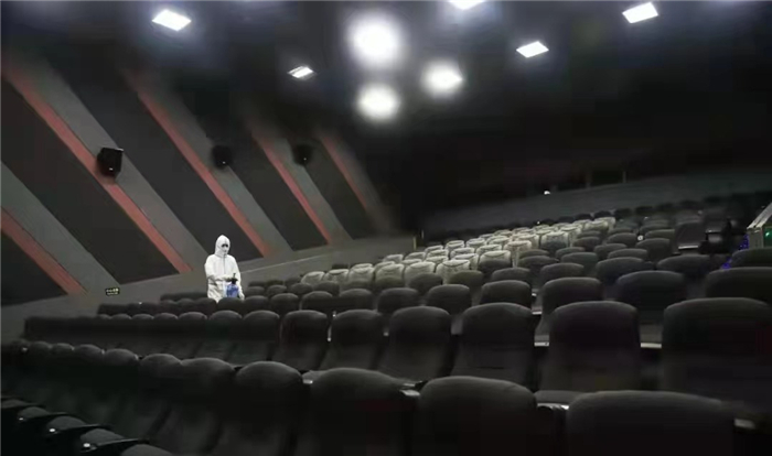 市某影城在观众观影后消毒