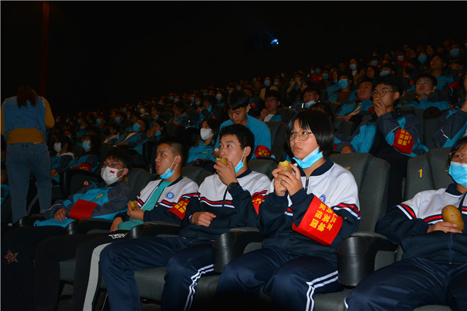 “崇尚英雄才能英雄辈出!电影中有‘下午4:30总攻’,我们要跟随英雄的步伐,集体出发走到电影院、走进电影里。”中午12点,郸城三高校长刘德敬作“战前动员”。为提高观影体验,每位师生都没有吃午饭,刘德敬和校党总支书记刘远升为每一位同学发了一枚蒸土豆。