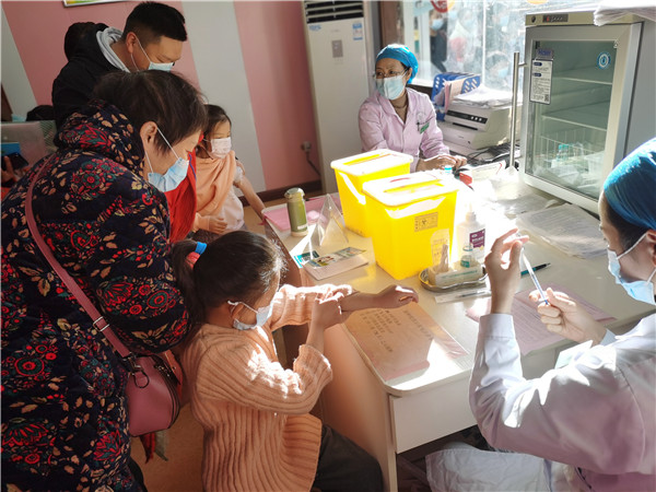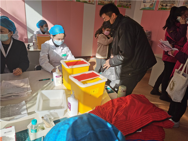 11月9日早上,周口市六一路小学学生在监护人的陪同下,来到社区门诊接种新冠疫苗。信息填报、电脑信息登记、完成注射、接种后留观等每一环节都做到专人指引,现场秩序井然。疫苗接种现场,学生有序排队入场,家长全程陪同,佩戴口罩,间隔一米,确保新冠疫苗接种安全、规范、有序。③3