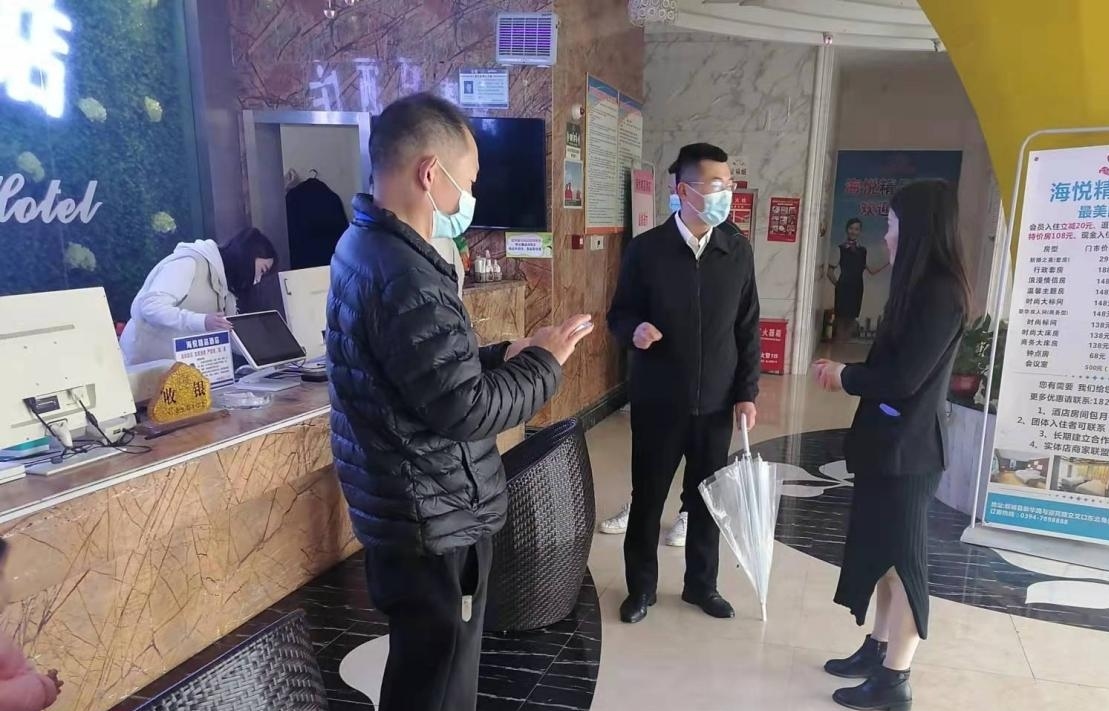 在排查中,工作人员向麻将室、棋牌室、酒吧、网吧、影院、KTV等相关经营场所发放和张贴暂时关停的最新通告,并签订了疫情防控告知书,严禁私自恢复经营,一经发现将依法依规予以严肃查处。
