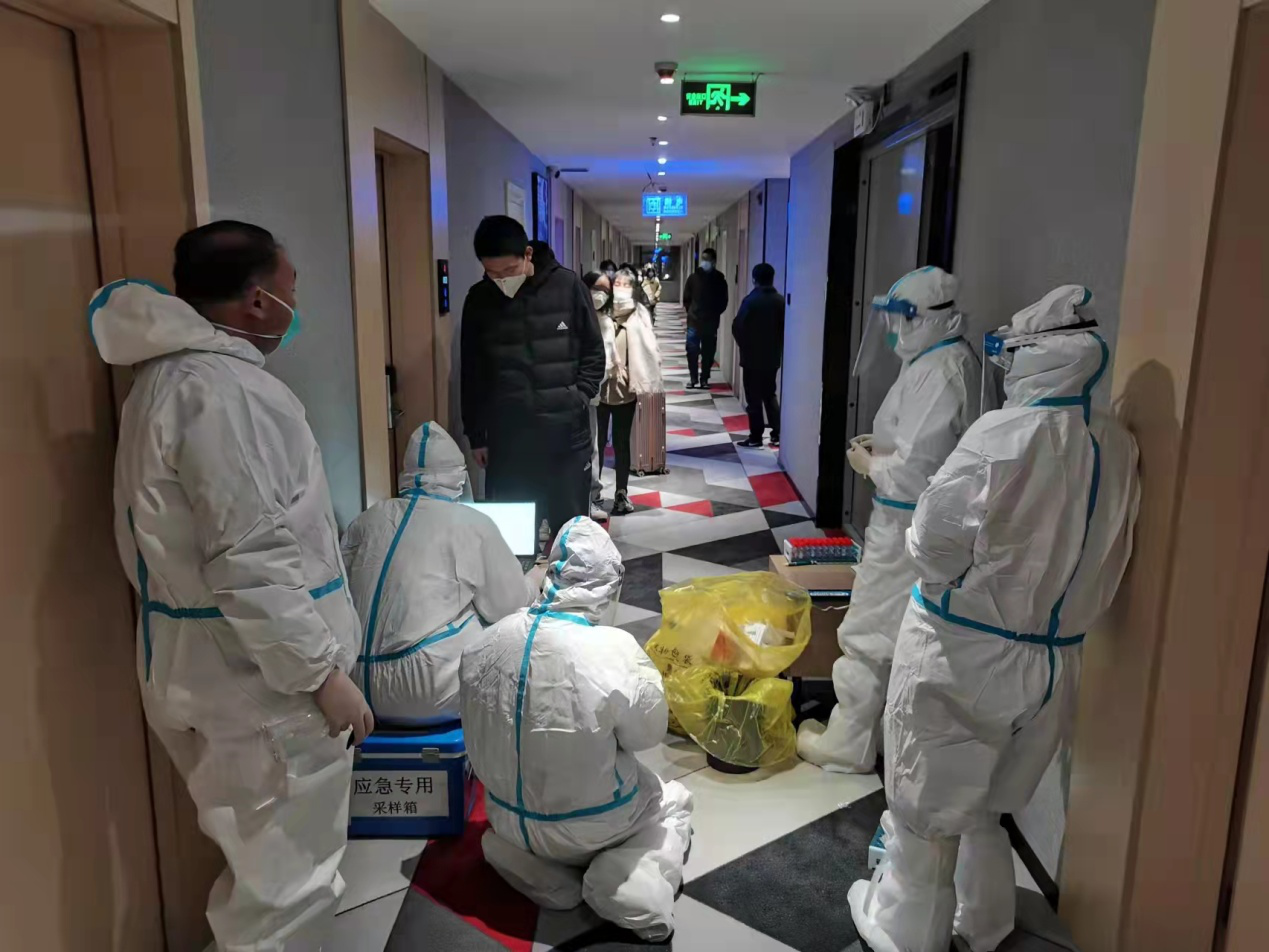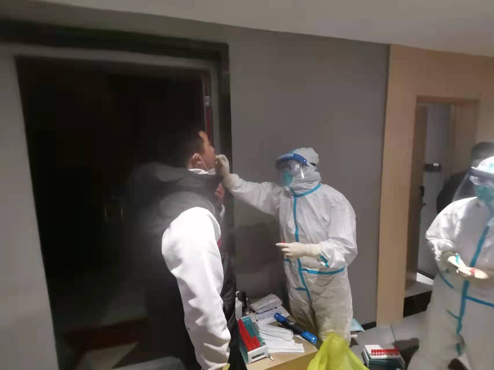 11月9日3时许,商水县100余名驰援扶沟归来的医护人员和部分扶沟来商水隔离人员相继进入商水境内,县疾控中心的工作人员立即全副武装,顶着刺骨的寒风,奔赴隔离点,开展全面消杀和有序样本采集。样品采集完成后,核酸检测实验室工作人员也开始满负荷“运转”,为确保快速有效出具检测结果,县疾控中心一线工作人员彻夜未眠。