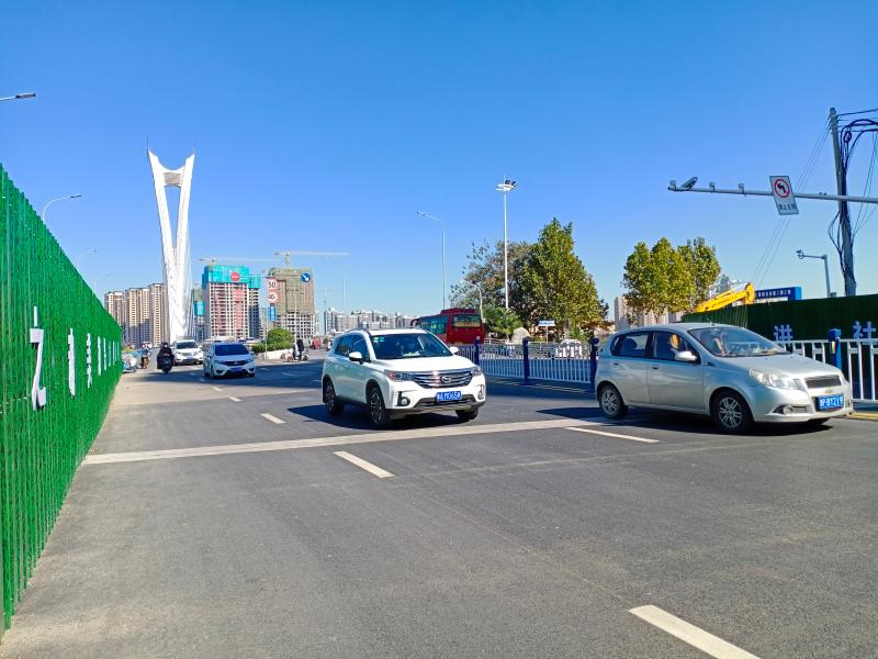 11月9日,记者在周口市中心城区大庆路桥南头看到,原本堵在道路中央的施工围挡己拆除,桥南头已可以正常通行。记者张洪涛摄