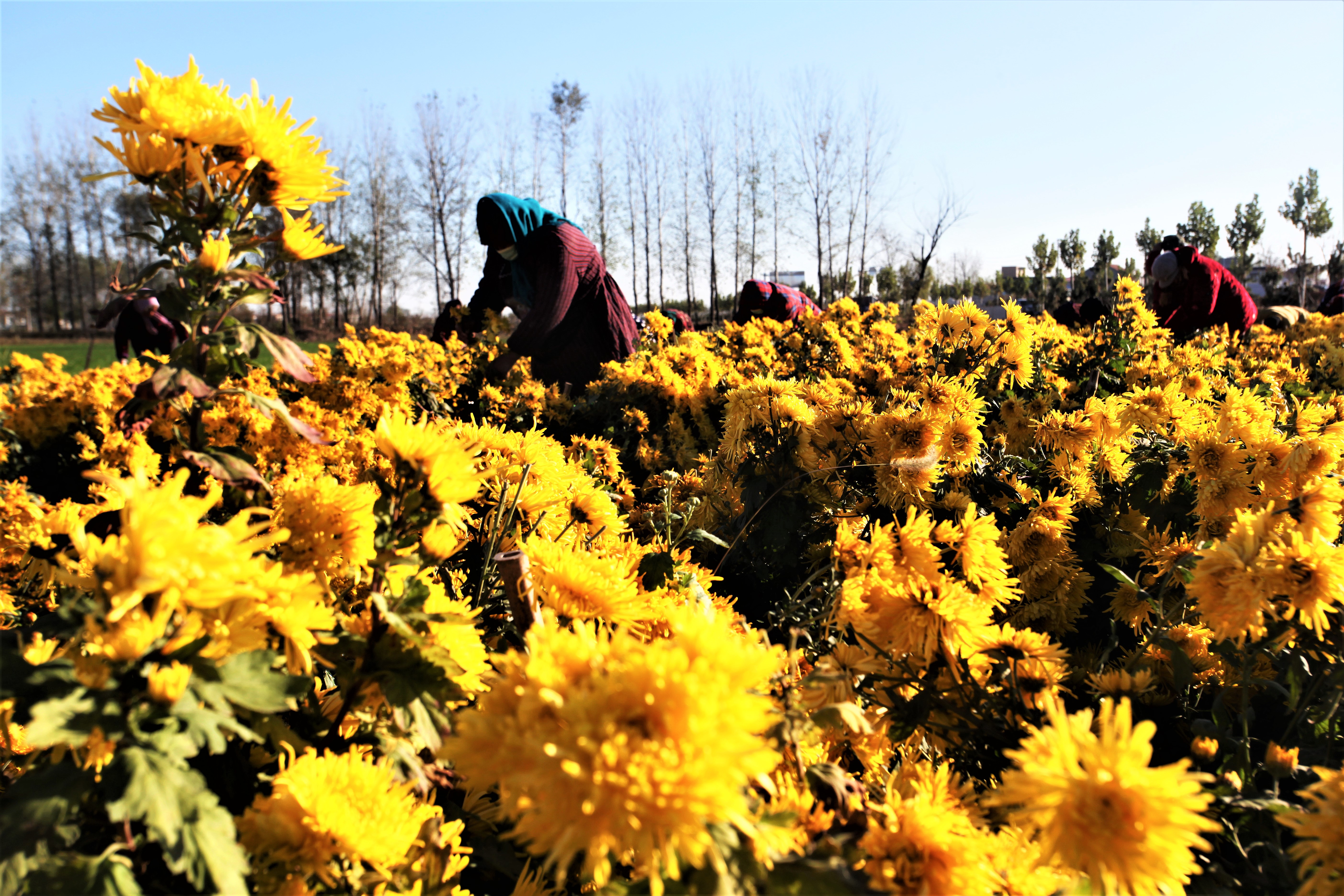 11月10日,商水县邓城镇后史村菊花园里,村民们正抢抓当前天气晴好的有利时机采摘菊花。近年来,该县把发展特色农业作为增收致富的重要举措,采取“公司+合作社+农户”的方式发展花海经济,助推乡村振兴。