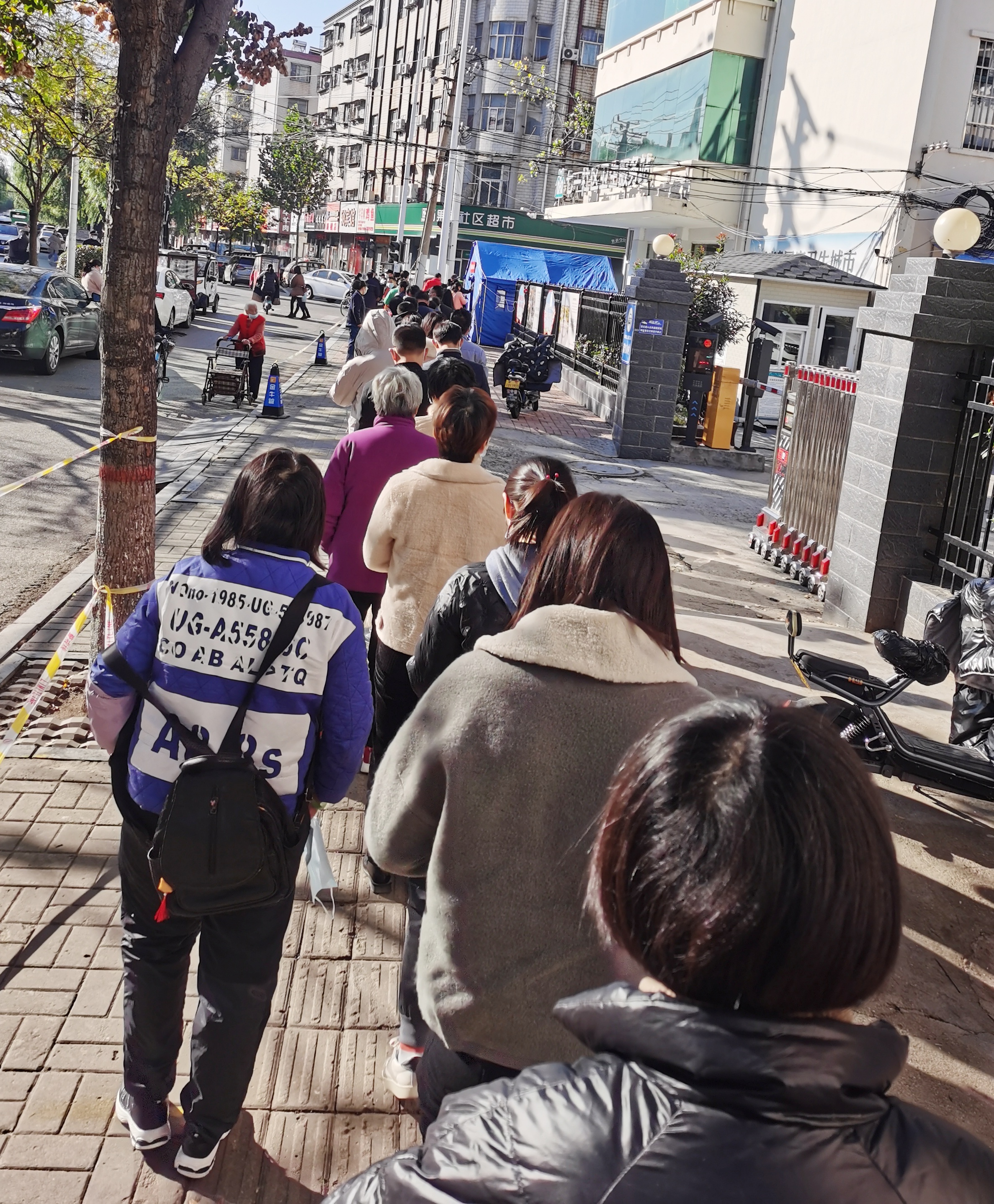 为更好地进行疫情防控,方便市民,中心城区设置了 7个免费核酸检测采样点。市民们自觉遵守防疫要求,均是主动前往进行核酸检测。每个点均有排起长队等待核酸检测的市民,市民按照要求出示行程码、登记个人信息有序排队等待。③6