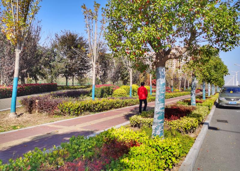 11月13日,腾飞路的香樟、女贞等树木都穿上了“冬衣”。气温降了,为了防止树林受到冻害,我市园林管理部门提早做好了植物防寒工作,确保树木安全过冬。③3